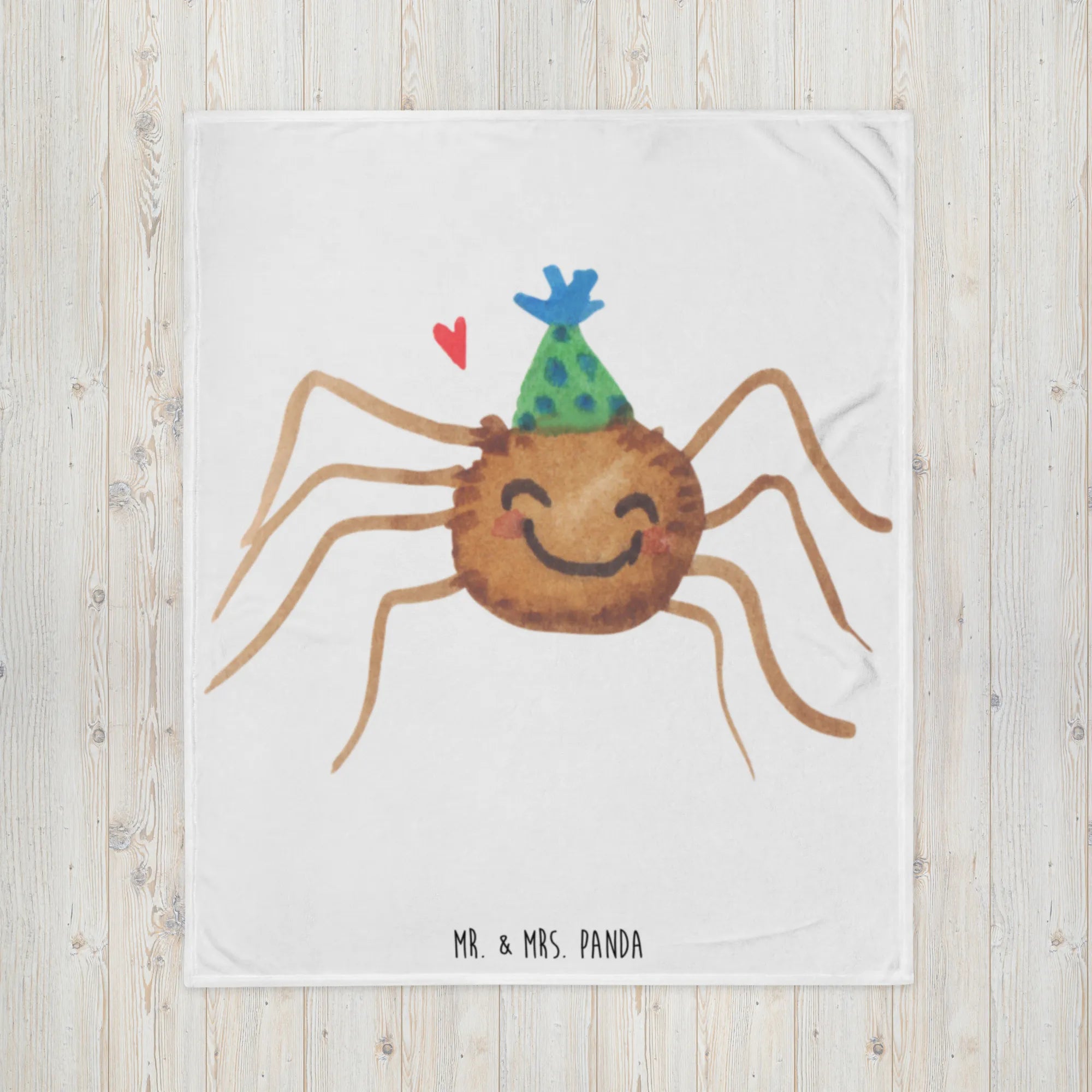 Kuscheldecke Spinne Agathe Party - mit Spruch - Weiß