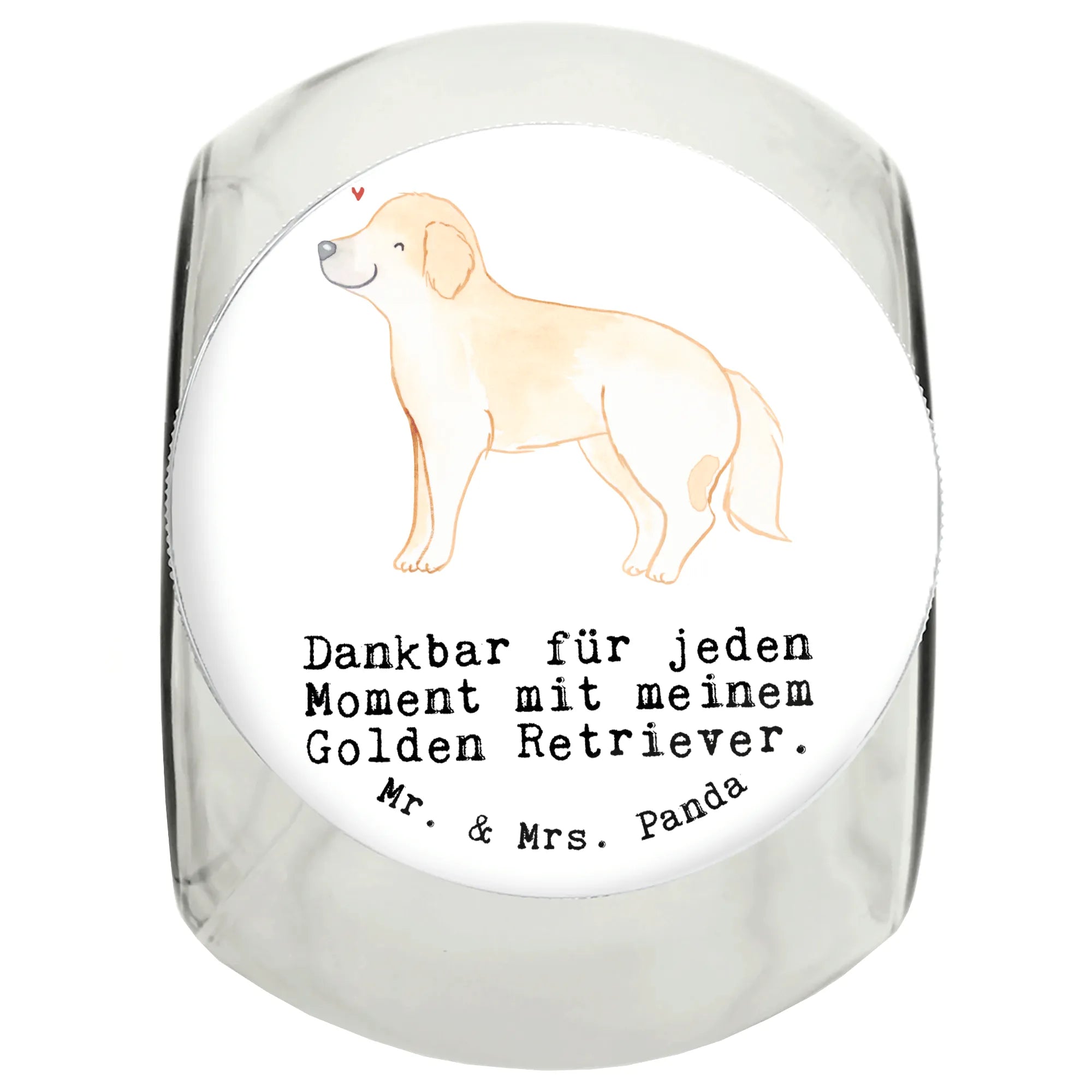 Das Leckerli Glas "Golden Retriever Moment" von Mr. & Mrs. Panda ist das perfekte Geschenk für jeden Hundeliebhaber und speziell für Besitzer eines Golden Retrievers. Mit diesem einzigartigen, liebevoll gestalteten Glas kannst du die Freude und Dankbarkeit für jeden gemeinsamen Moment mit deinem vierbeinigen Freund festhalten.
