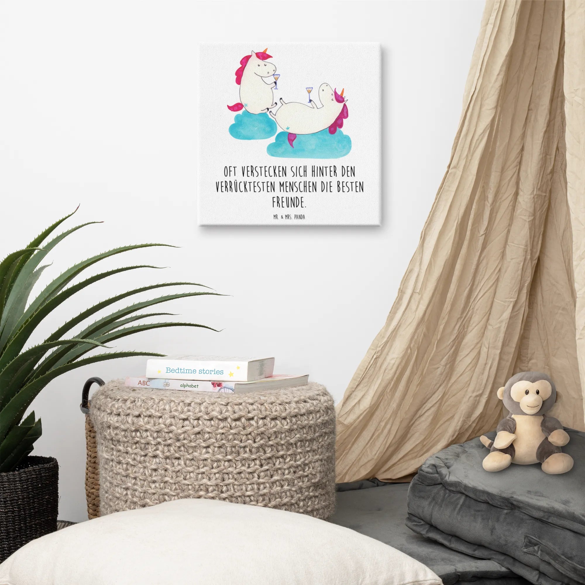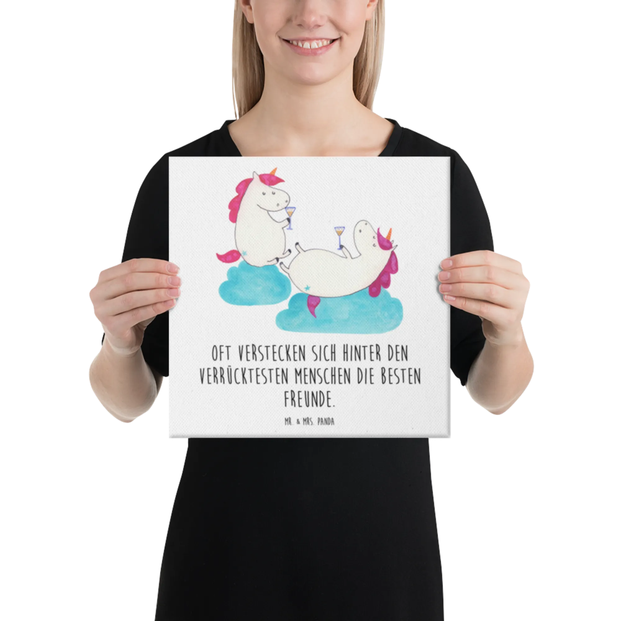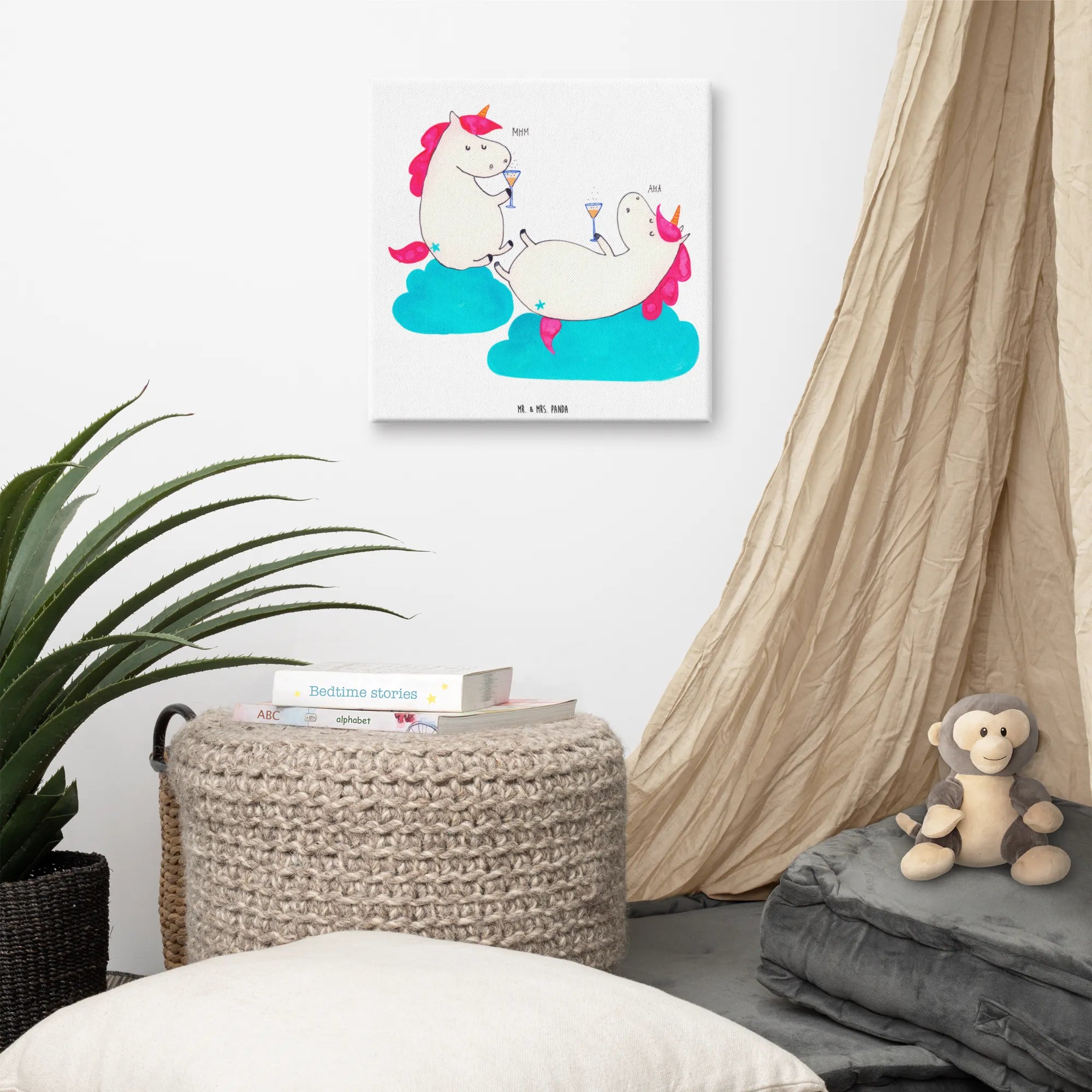 Leinwand Bild Einhörner Sekt - 40 x 40 cm - mit Spruch