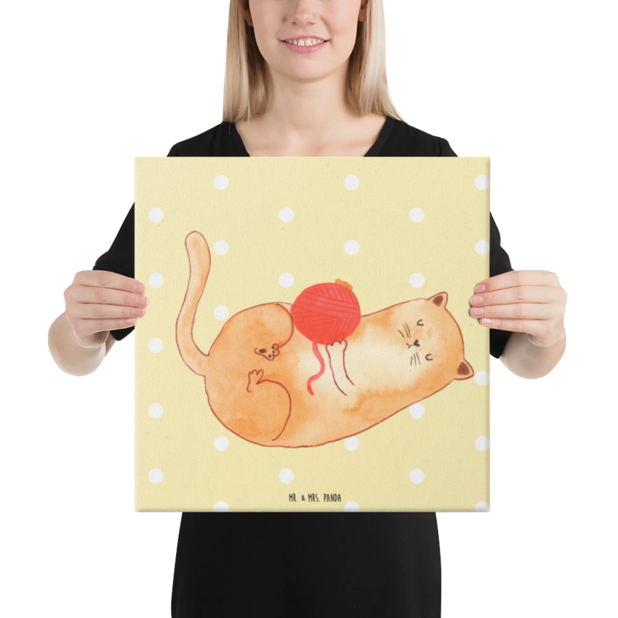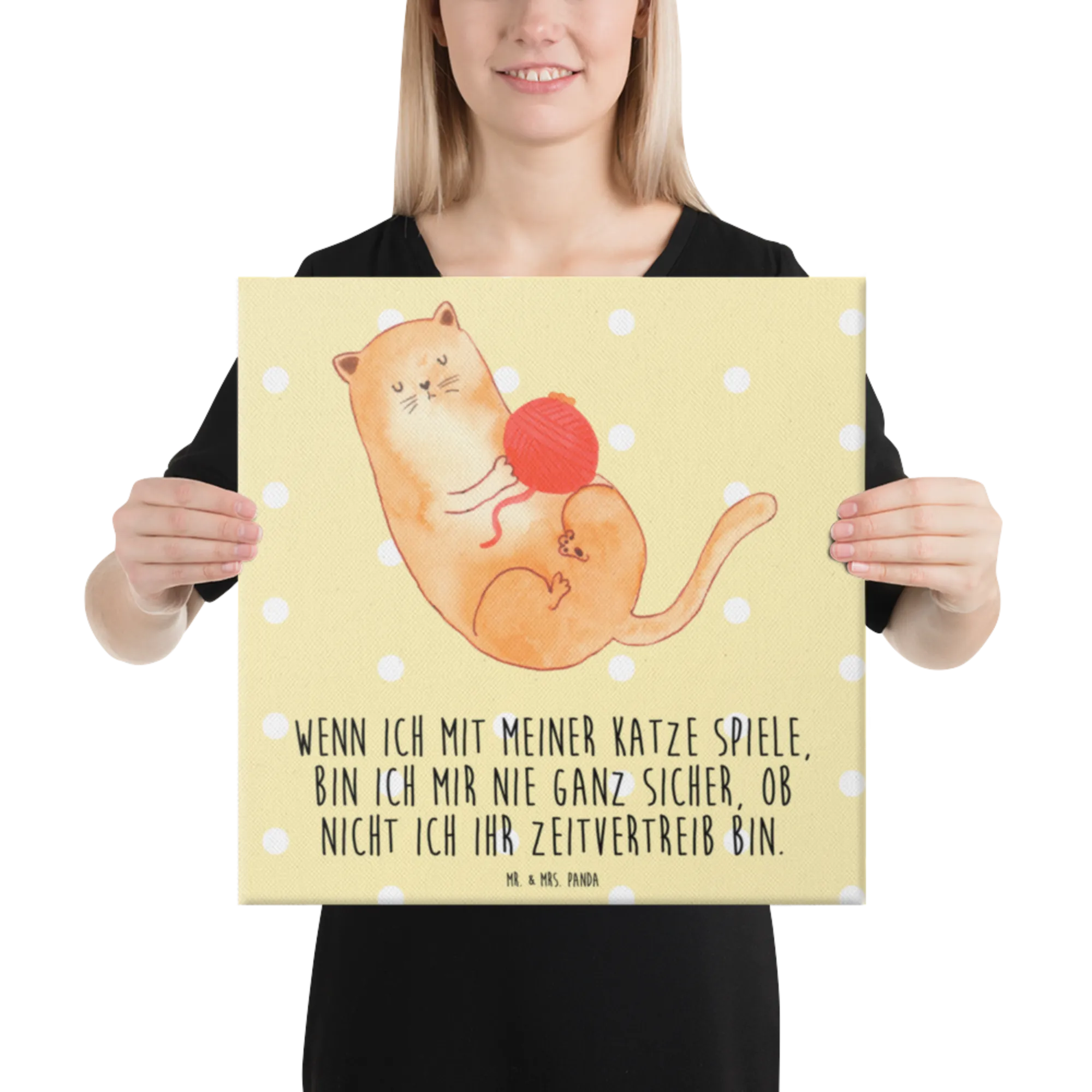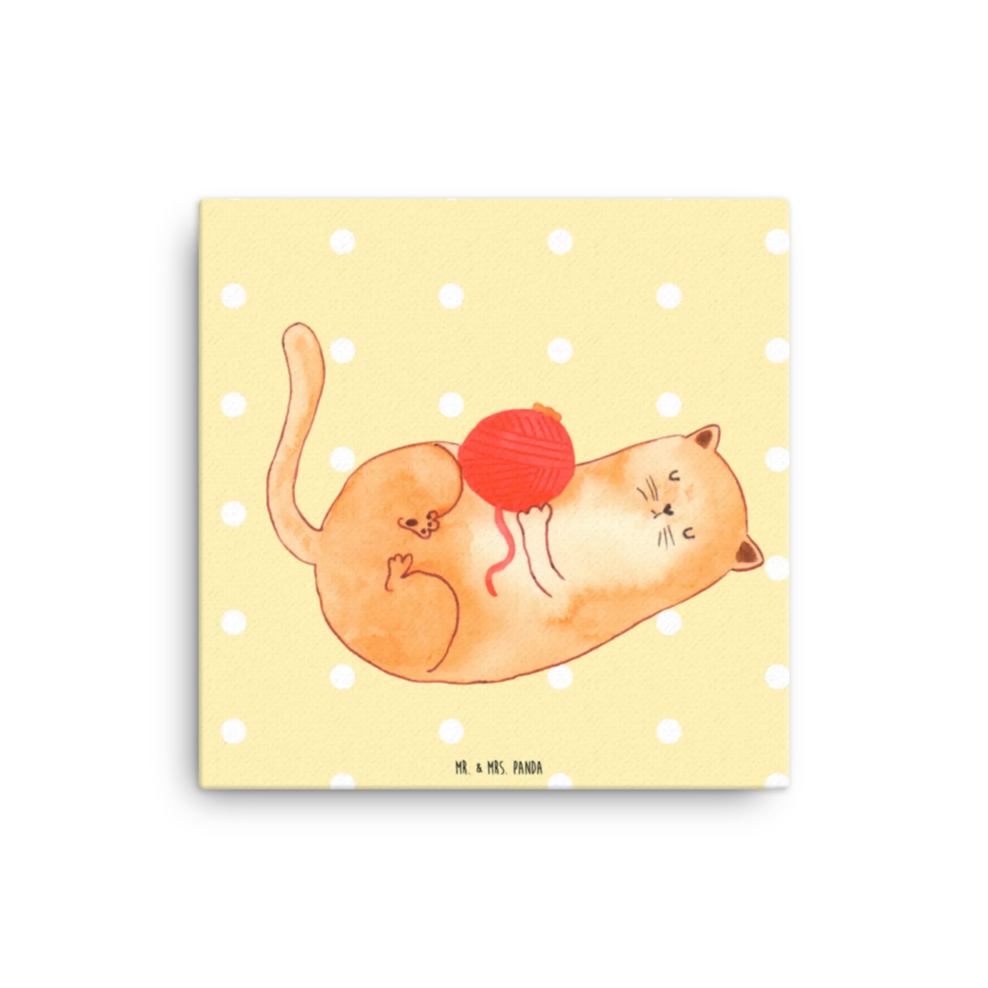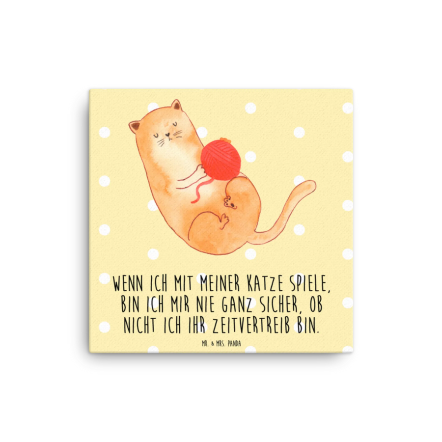 Leinwand Bild Katze Wolle - mit Spruch - Gelb Pastell