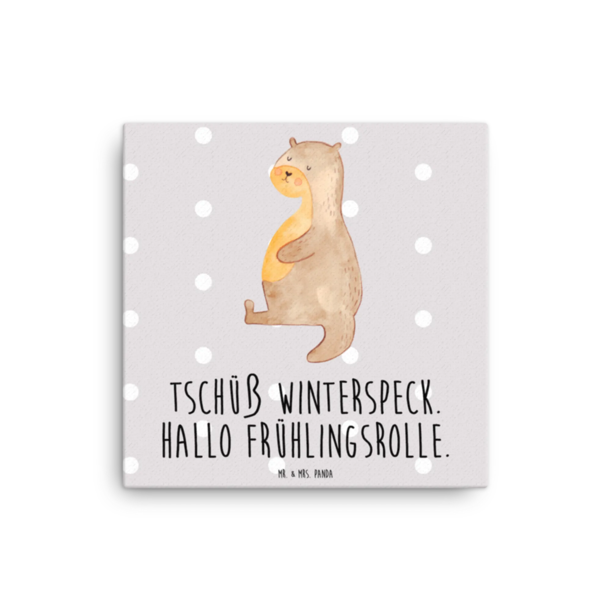 Kannst du ihn sehen? Einen kleinen Otter, zufrieden sitzend, den Bauch sonnengeküsst und voll mit der Freude des beginnenden Frühlings. 'Tschüß Winterspeck. Hallo Frühlingsrolle' - ein Motiv von Mr. & Mrs. Panda, das dich dazu einlädt, dich selbst und diesen Moment voll und ganz zu lieben. Denn jeder Moment ist perfekt, genau wie er ist, und du auch.