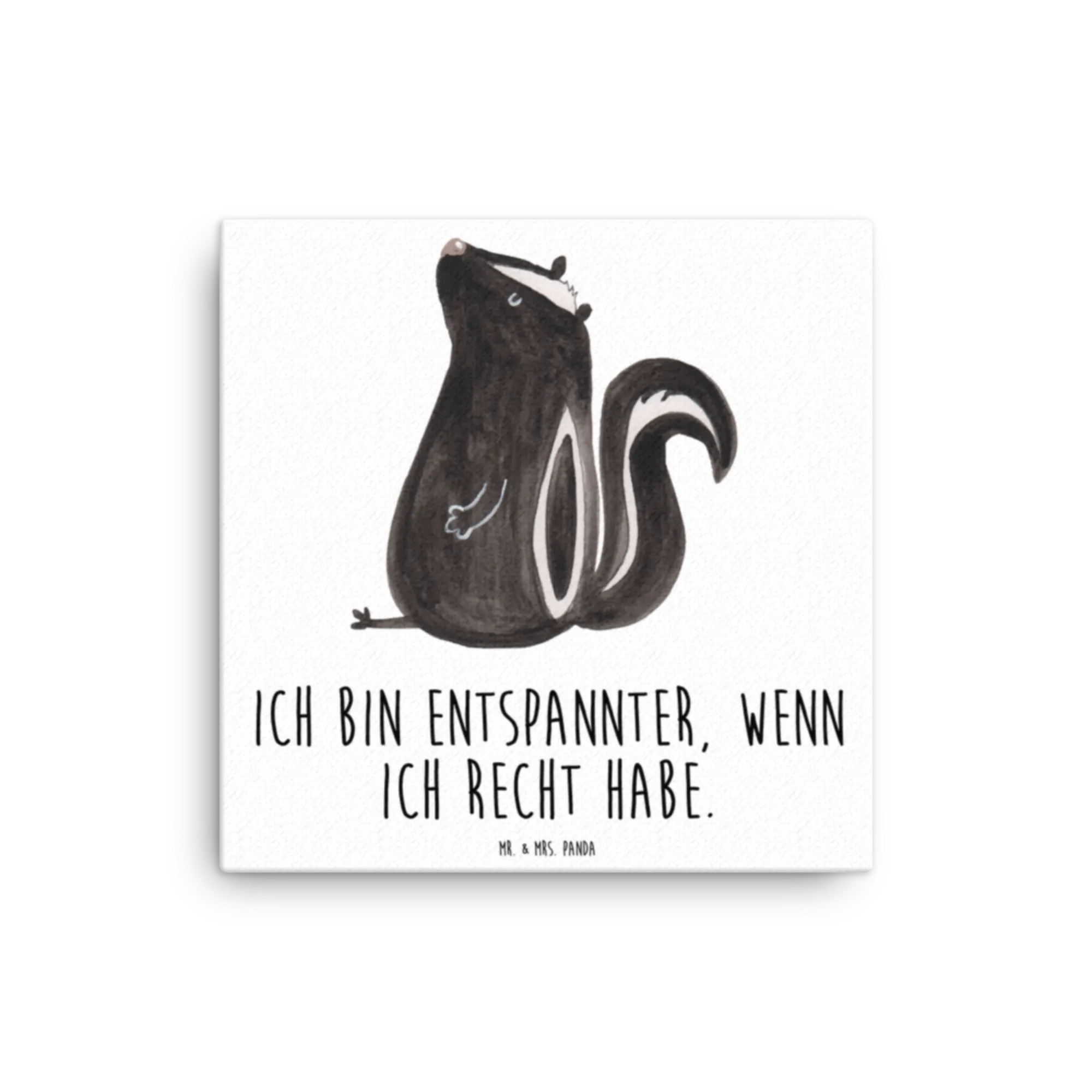 Leinwand Bild Stinktier Sitzen - 40 x 40 cm - mit Spruch - Weiß