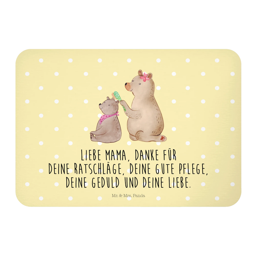 Der Kühlschrankmagnet "Bär mit Kind" von Mr. & Mrs. Panda ist das perfekte Geschenk für alle, die ihre Mama schätzen und ihr zeigen möchten, wie wichtig sie ist. Dieser liebevoll gestaltete Magnet zeigt einen großen Bären, der zärtlich das Haar eines kleineren Bären bürstet. Beide Bären strahlen eine herzliche Verbindung aus, die nicht nur Kinder, sondern vor allem Mütter berührt.