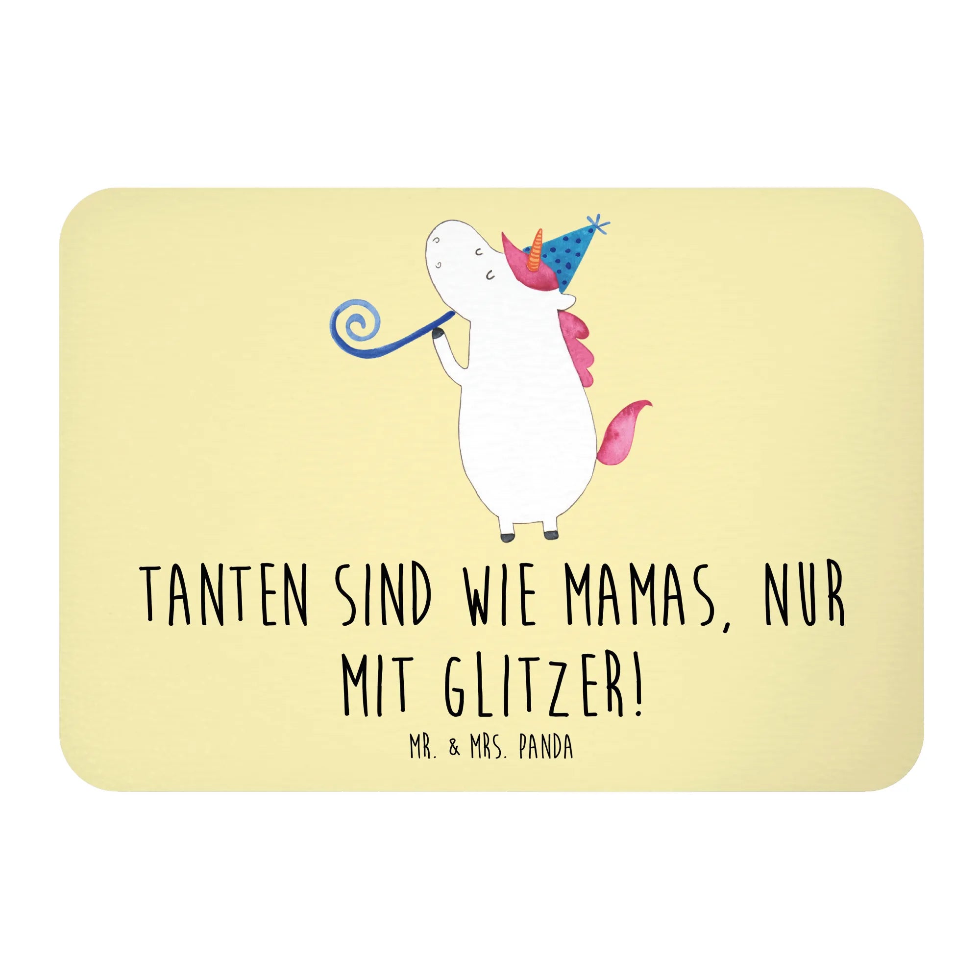 Dieser bunte Kühlschrankmagnet aus der Mr. & Mrs. Panda Kollektion Familie & Verwandte trägt den fröhlichen Spruch „Tanten sind wie Mamas, nur mit Glitzer!“ und ist das perfekte Geschenk, um Danke zu sagen oder einer besonderen Tante einfach eine Freude zu bereiten. Der Dekomagnet ist liebevoll gestaltet und bringt Farbe in Küche, Flur oder Büro.