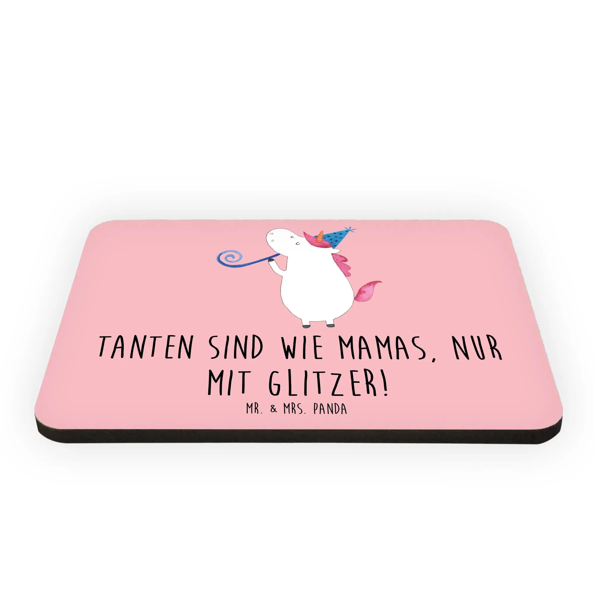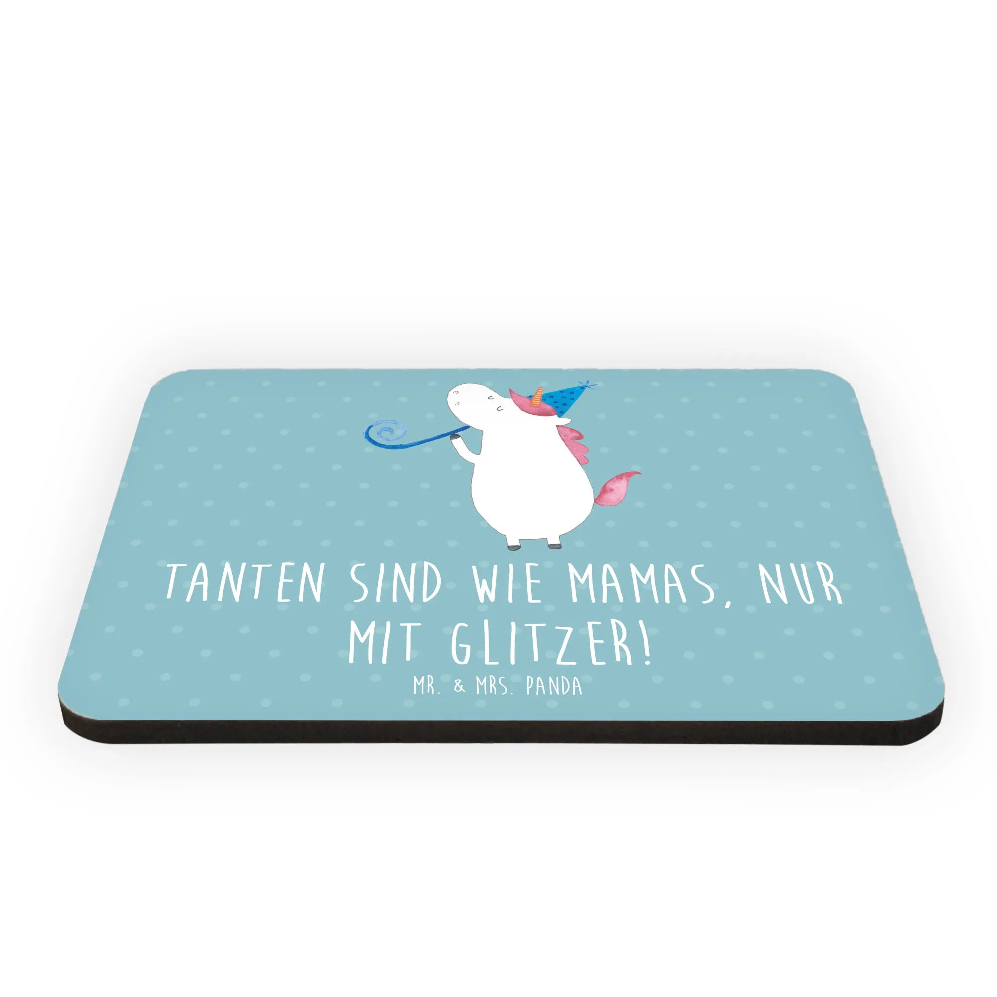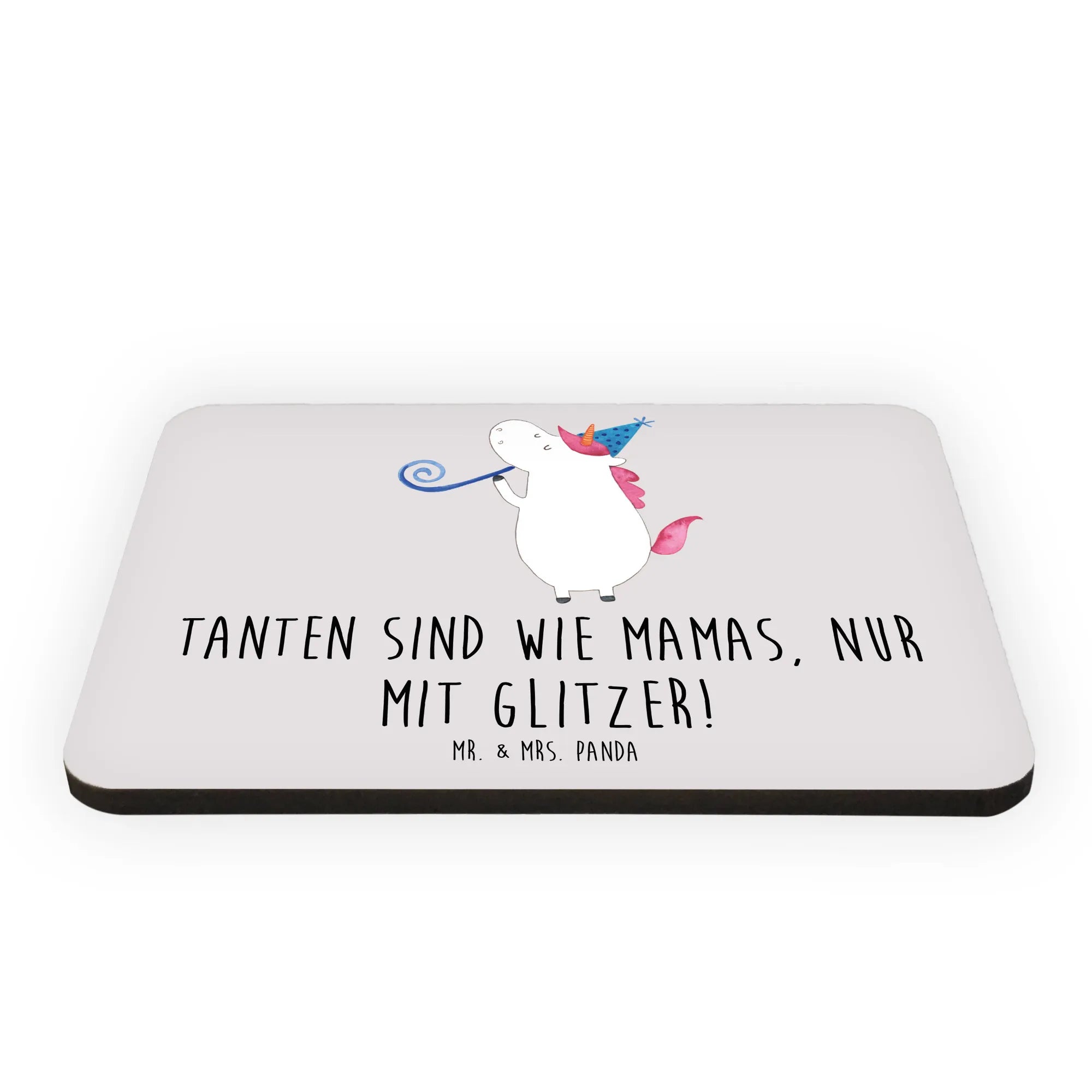 Ein Kühlschrankmagnet von Mr. & Mrs. Panda, der das Herz jeder Tante höher schlagen lässt! Mit dem süßen Spruch 'Tanten sind wie Mamas, nur mit Glitzer!' wird dieser Magnet zu einem echten Highlight in jeder Küche oder am Whiteboard.