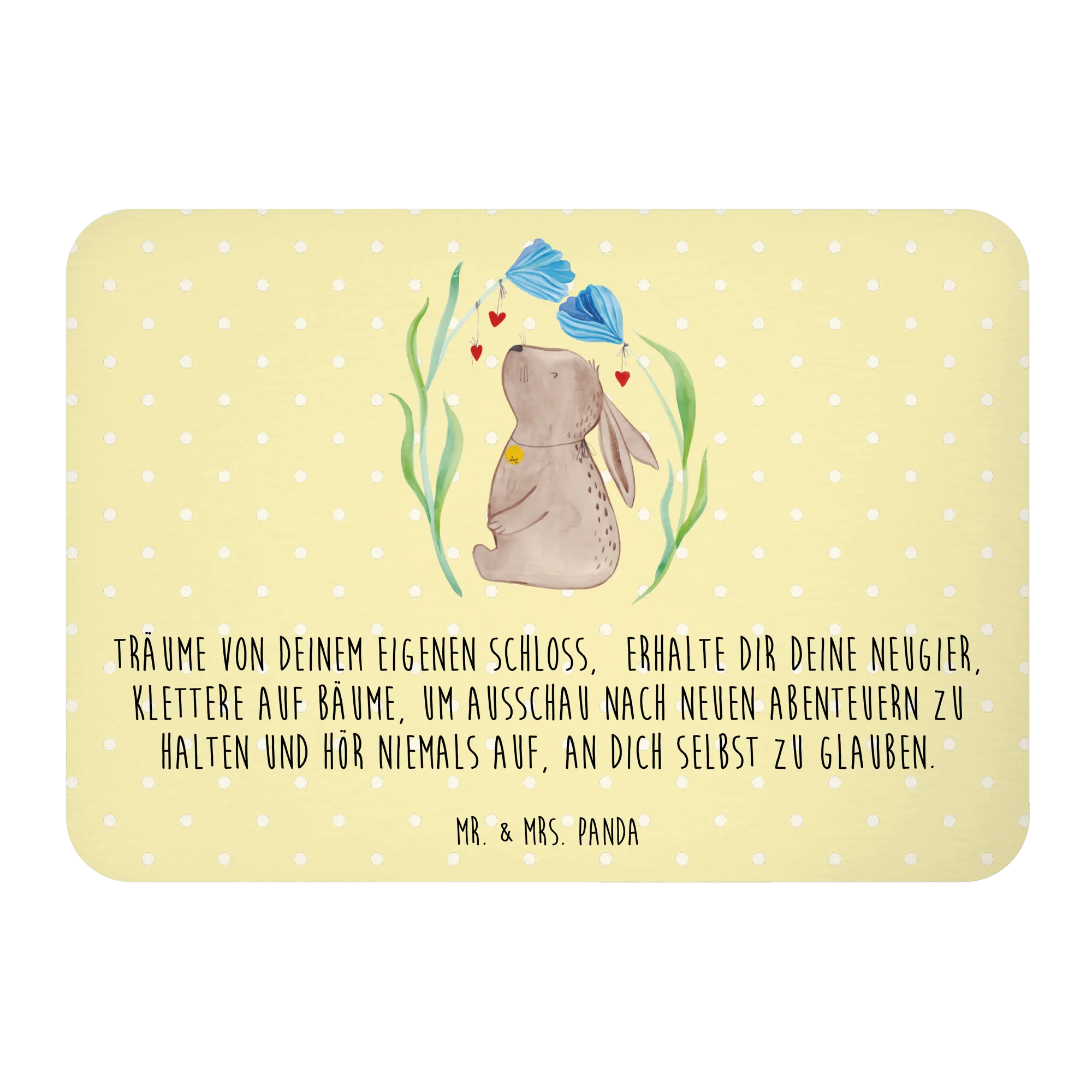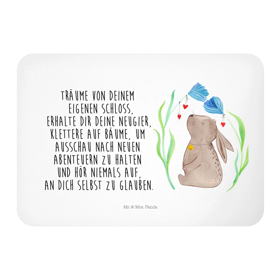 Der Kühlschrankmagnet mit dem fröhlichen Motiv "Hase Blume" aus der zauberhaften Ostern-Kollektion von Mr. & Mrs. Panda ist der perfekte Begleiter für das Osterfest! Mit einem süßen Hasen, der unter bunten Blumen umherhüpft, zaubert dieser Magnet ein Lächeln auf dein Gesicht und bringt eine fröhliche Stimmung in dein Zuhause.