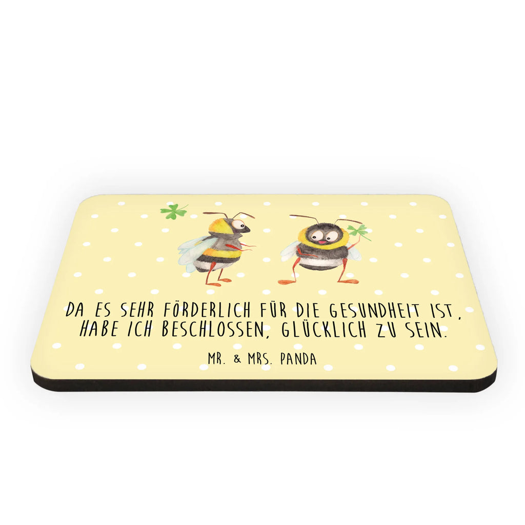 Magnet Hummeln Kleeblatt - mit Spruch - Gelb Pastell