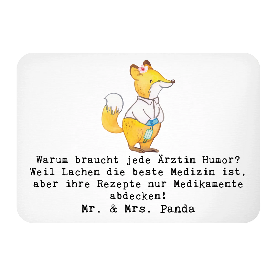 Du bist auf der Suche nach dem perfekten Geschenk für eine Ärztin? Dann ist unser Kühlschrankmagnet "Ärztin" aus der liebevollen Berufe-Kollektion von Mr. & Mrs. Panda genau das Richtige! Mit seinem lustigen Spruch - "Warum braucht jede Ärztin Humor? Weil Lachen die beste Medizin ist, aber ihre Rezepte nur Medikamente abdecken!" - zaubert dieser Magnet jedem ein Lächeln ins Gesicht.
