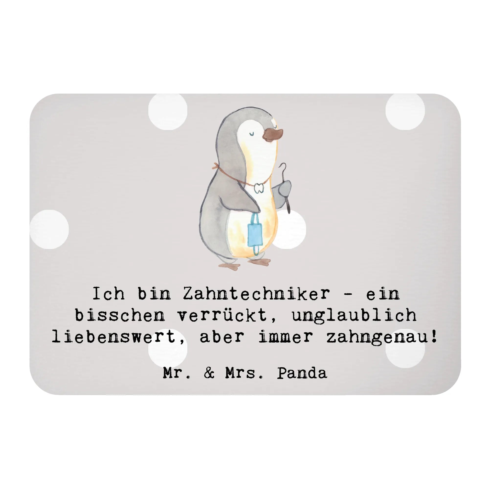 Der Magnet "Ich bin Zahntechniker - ein bisschen verrückt, unglaublich liebenswert, aber immer zahngenau!" aus der Kollektion Berufe von Mr. & Mrs. Panda ist die perfekte Geschenkidee für alle, die im Zahntechniker-Bereich arbeiten oder gerade ihre Ausbildung dazu machen.