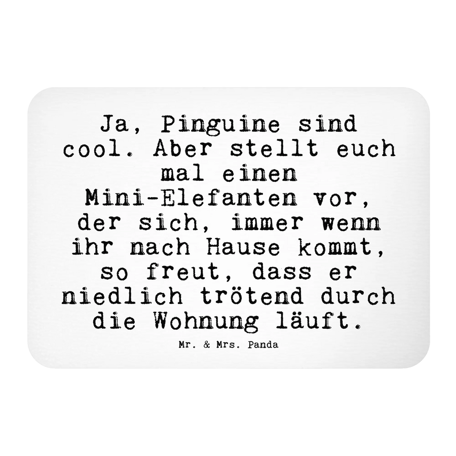 Ein kleiner Willkommenströter für dein Zuhause! Unser Magnet von Mr. & Mrs. Panda mit dem liebenswerten Spruch „Ja, Pinguine sind cool. Aber stellt euch mal einen Mini-Elefanten vor, der sich, immer wenn ihr nach Hause kommt, so freut, dass er niedlich trötend durch die Wohnung läuft.“ bringt dir jeden Tag ein Lächeln. 🎉