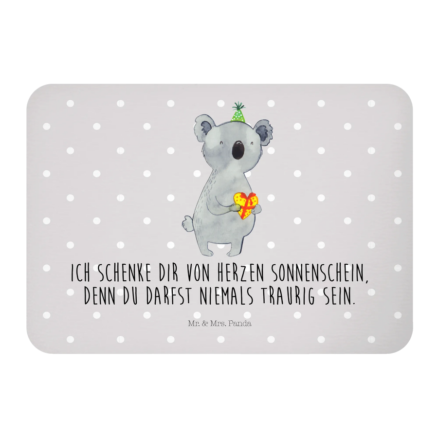 Unser Kühlschrankmagnet Koala Geschenk aus der besonderen Koala Kollektion von Mr. & Mrs. Panda ist das perfekte Geschenk für Koala-Fans, Geburtstagsfeiern oder als niedliches Souvenir. Der Magnet mit einem fröhlichen Koala, der einen Partyhut trägt und ein Herzgeschenk in der Hand hält, bringt nicht nur Farbe, sondern auch gute Laune in jede Küche! Besonders in bunten Wohnräumen sorgt er für ein fröhliches Ambiente.