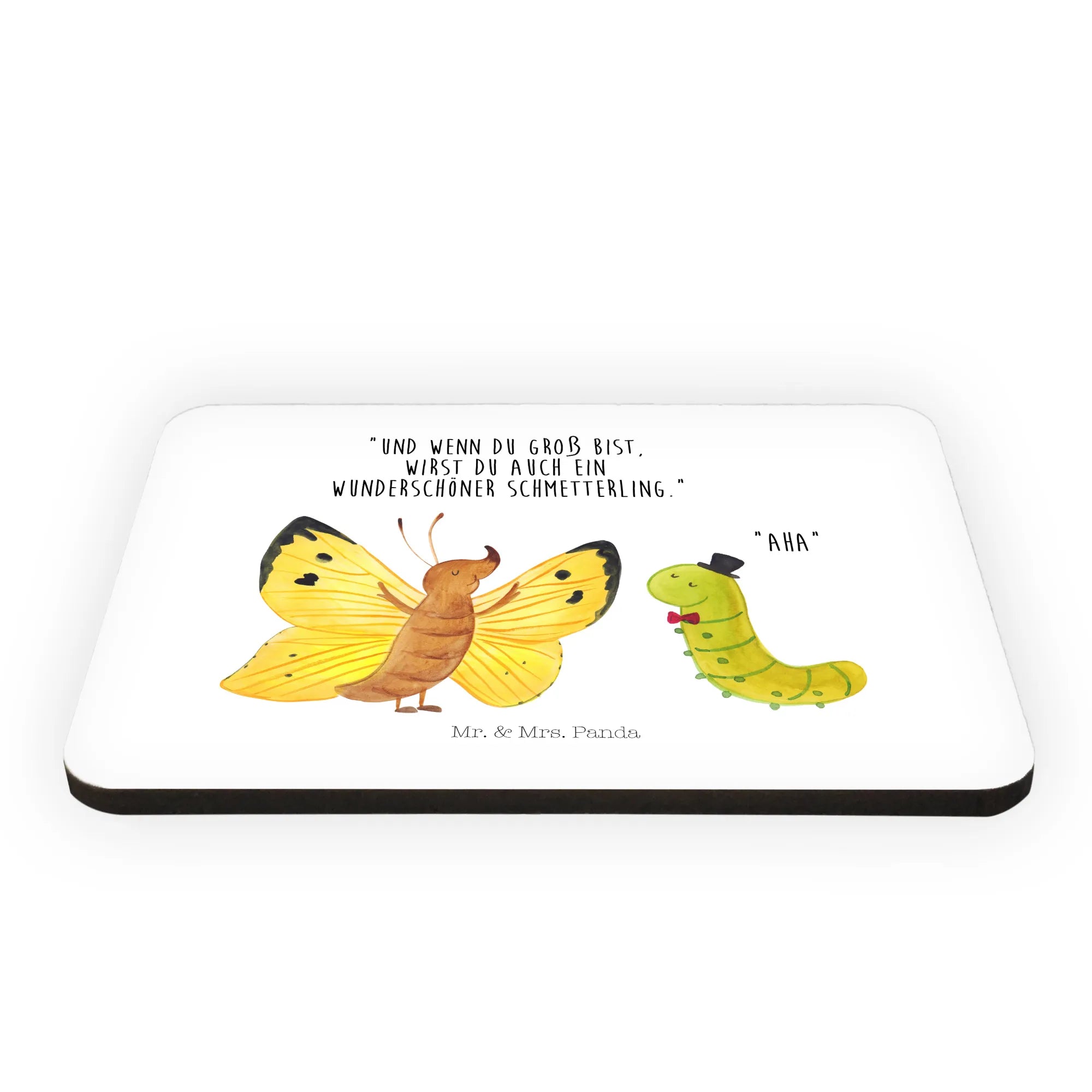 Magnet Raupe & Schmetterling - mit Spruch - Weiß