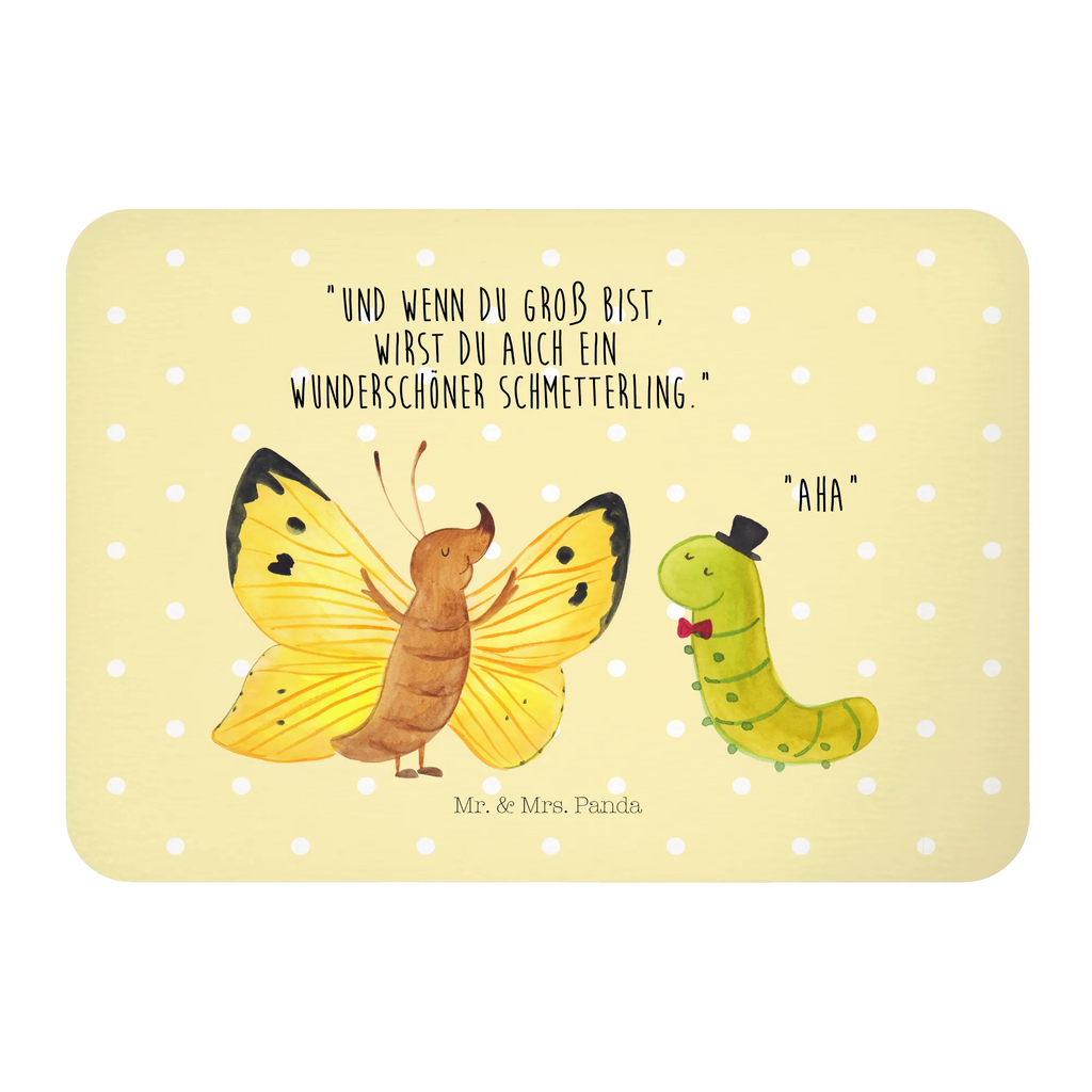 Der liebevoll gestaltete Magnet aus der Small World Kollektion von Mr. & Mrs. Panda ist mehr als nur ein Kühlschrankmagnet. Die zarte Raupe, die sich zum stolzen Schmetterling verwandelt, steht für Wachstum, Veränderung und Hoffnung. Die pastellgelbe Hintergrundfarbe und die eckige Form machen den Magneten zu einem hübschen Dekomagneten für Küche, Büro oder Kinderzimmer.