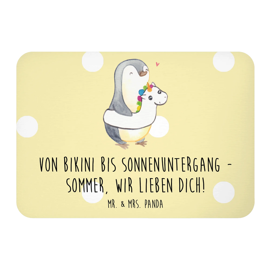 Die Mr. & Mrs. Panda Kühlschrankmagnet Sommer, Meer & Strand aus der Kollektion Jahreszeiten ist der perfekte Begleiter für alle, die die sonnigen Tage und unvergesslichen Momente lieben! Dieser Magnet, bedruckt mit dem liebevollen Slogan "Von Bikini bis Sonnenuntergang - Sommer, wir lieben dich!", bringt das Gefühl von Freiheit und Abenteuer direkt in Deine Küche.