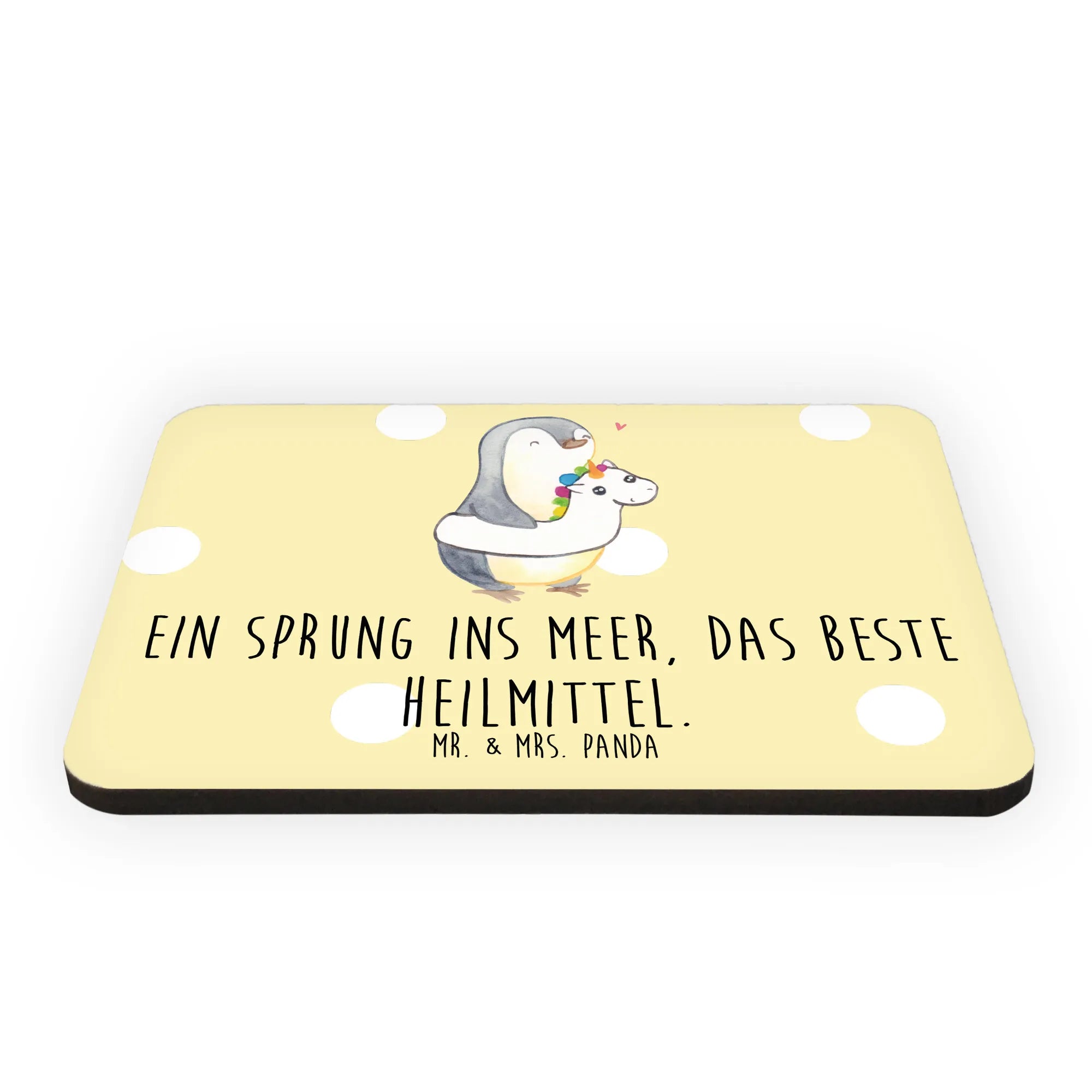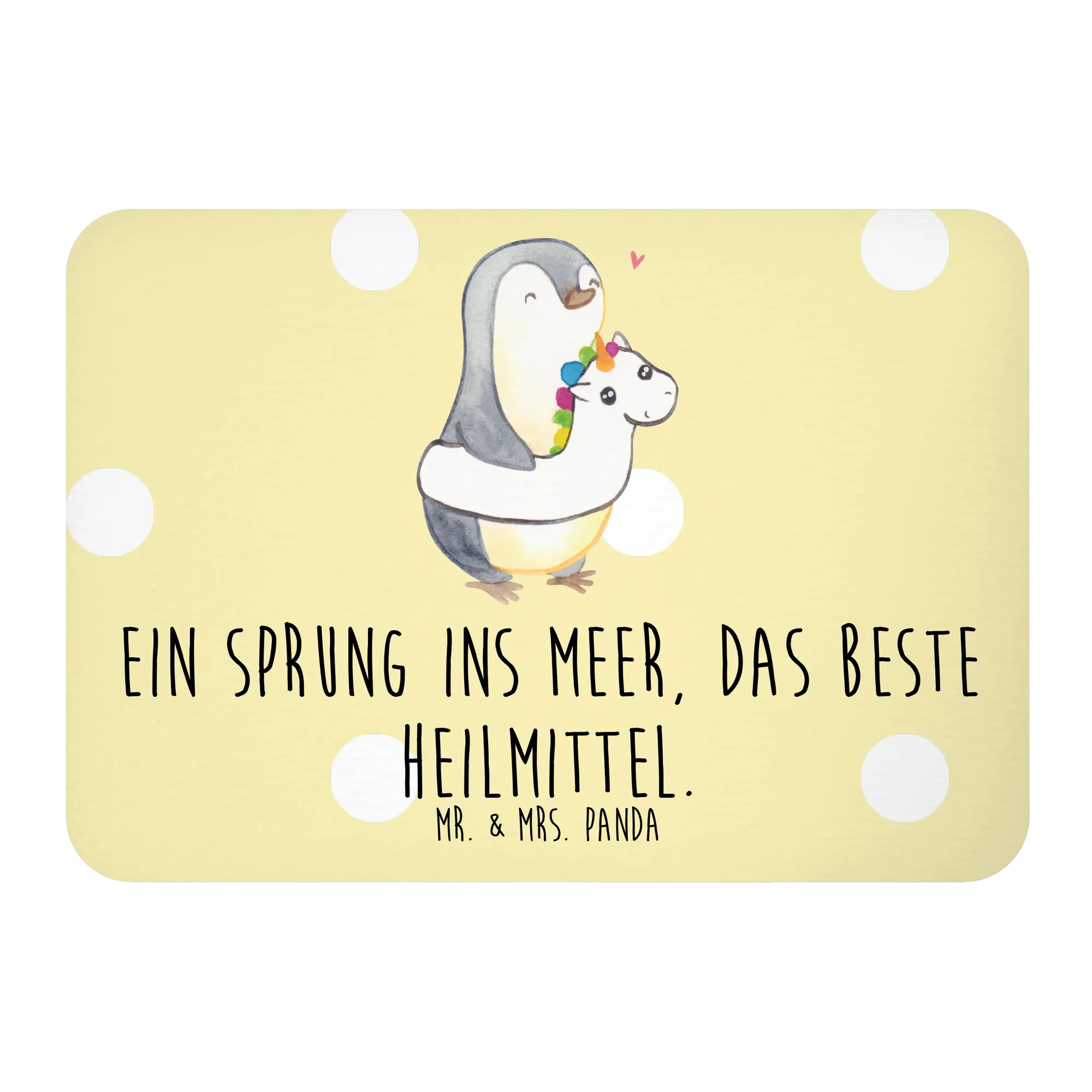 Der wunderschöne Kühlschrankmagnet von Mr. & Mrs. Panda ist mehr als nur ein praktisches Accessoire – er ist ein Stück Sommerfrische, das du jeden Tag genießen kannst! Mit seinem bunten Motiv, das den zauberhaften Strandurlaub einfängt, bringt er ein Lächeln in deine Küche und erinnert dich an all die sonnigen Tage am Meer. Der Slogan "Ein Sprung ins Meer, das beste Heilmittel" spricht für sich und versüßt jedem Sofern die Zeit beim Kochen oder Snacken.