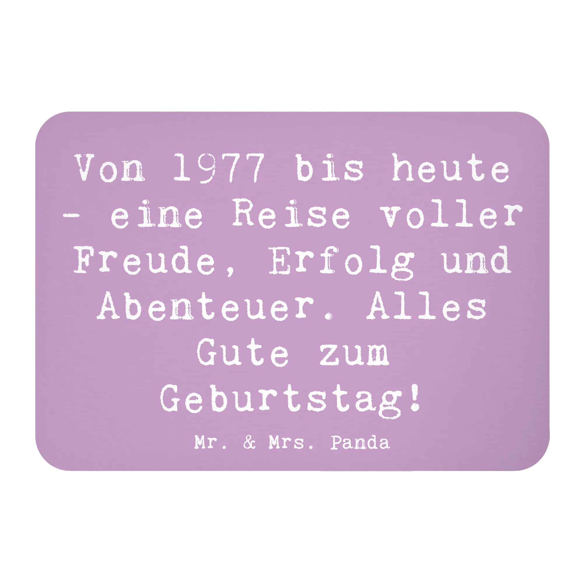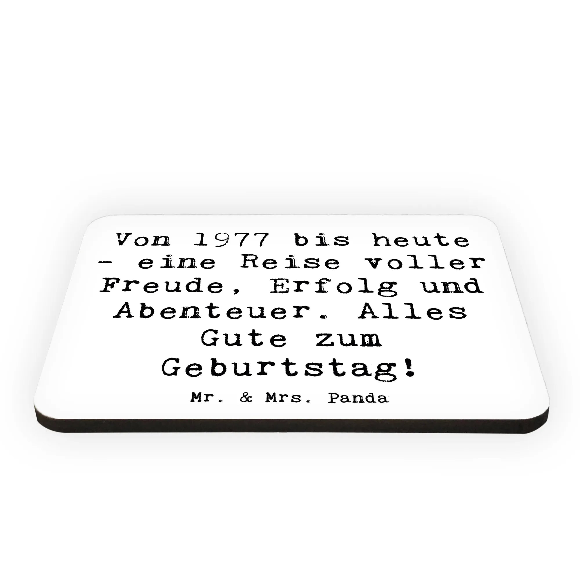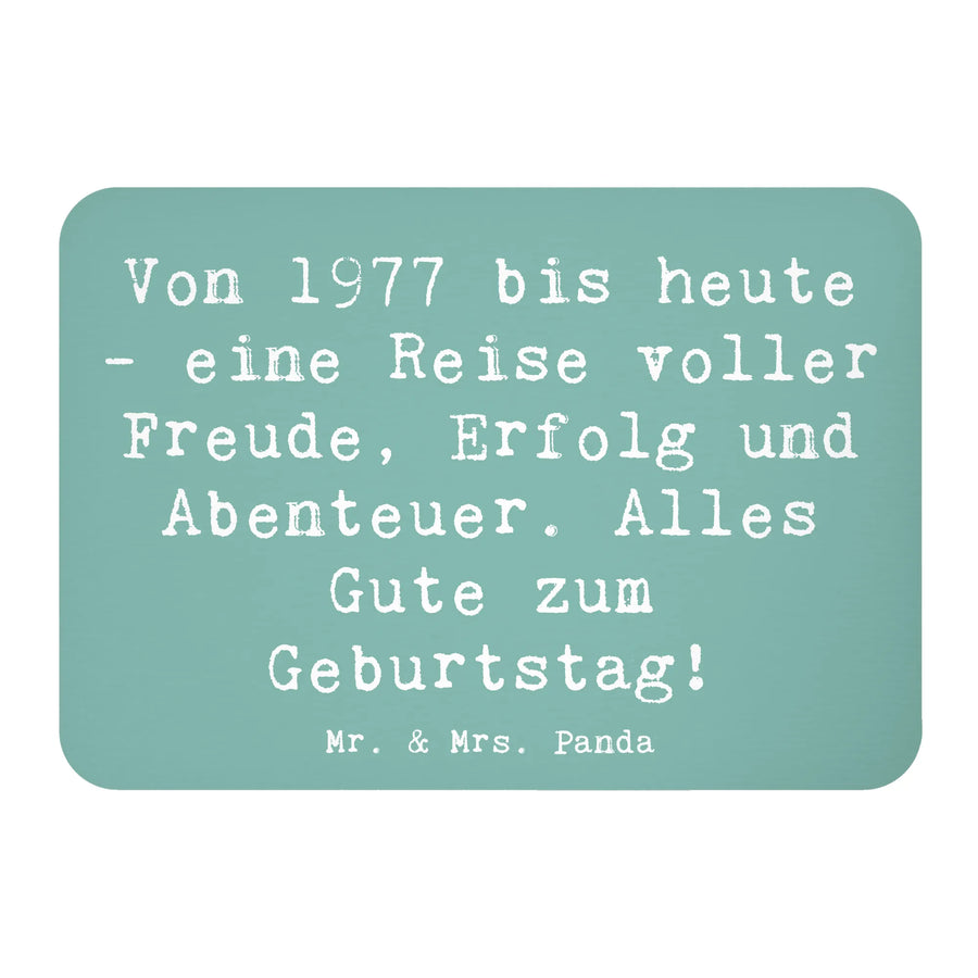 Entdecke unseren zauberhaften Kühlschrankmagneten "1977 Geburtstag" aus der exklusiven Geburtstag Geburtsjahr-Kollektion von Mr. & Mrs. Panda! Dieser exquisite Deko-Magnet ist nicht nur ein praktisches Accessoire, sondern bringt auch eine ganz besondere Botschaft zum Ausdruck. Mit dem liebevollen Spruch "Von 1977 bis heute - eine Reise voller Freude, Erfolg und Abenteuer. Alles Gute zum Geburtstag!" ist dieser Magnet ein ideales Geburtstagsgeschenk, das die Erinnerungen an einen ganz besonderen Tag feiert.