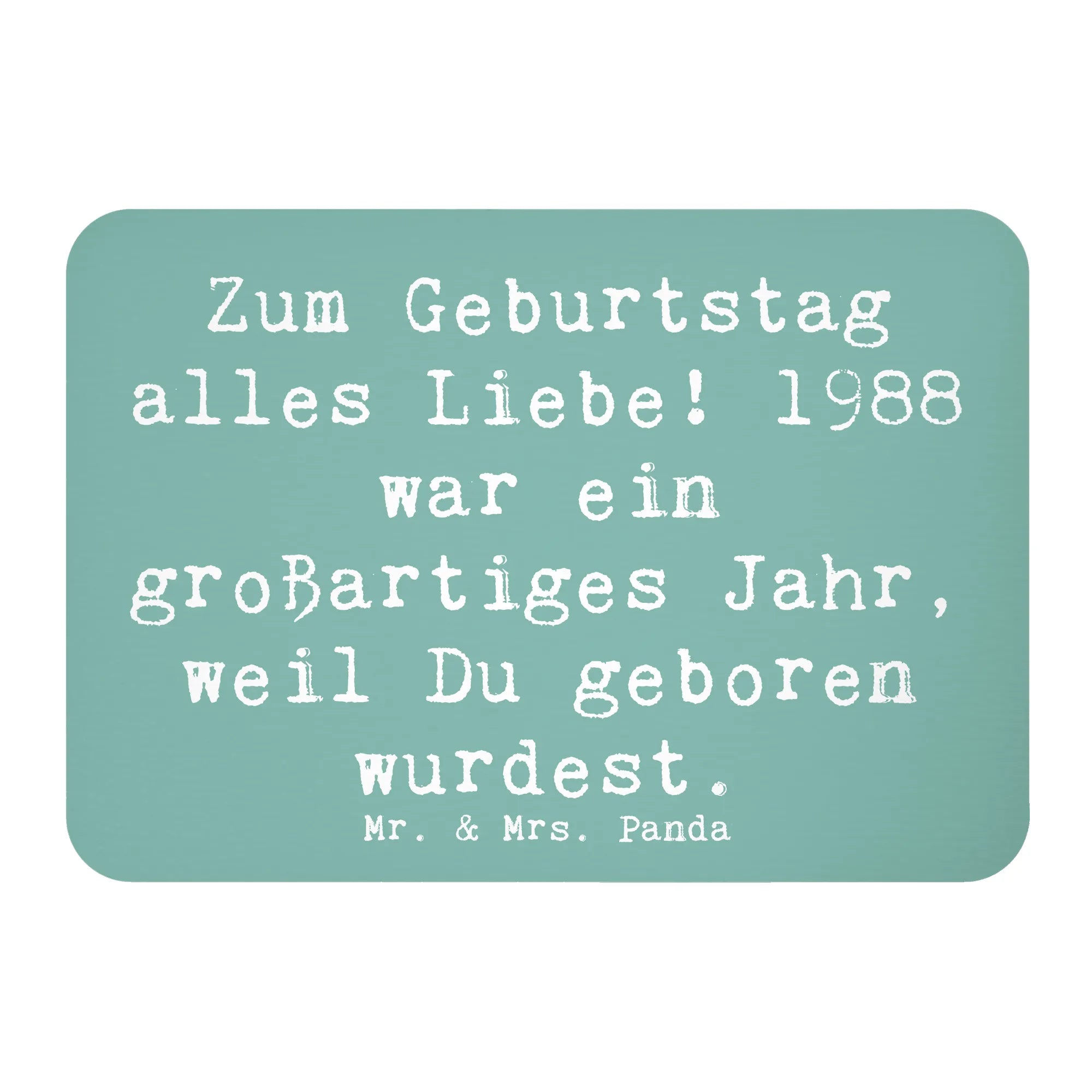 Der Magnet "1988 Geburtstag" von Mr. & Mrs. Panda ist das perfekte Geschenk für alle, die in diesem besonderen Jahr das Licht der Welt erblickt haben. Mit dem liebevollen Spruch "Zum Geburtstag alles Liebe! 1988 war ein großartiges Jahr, weil Du geboren wurdest." bringt dieser Magnet Freude und nostalgische Erinnerungen in jedes Zuhause.