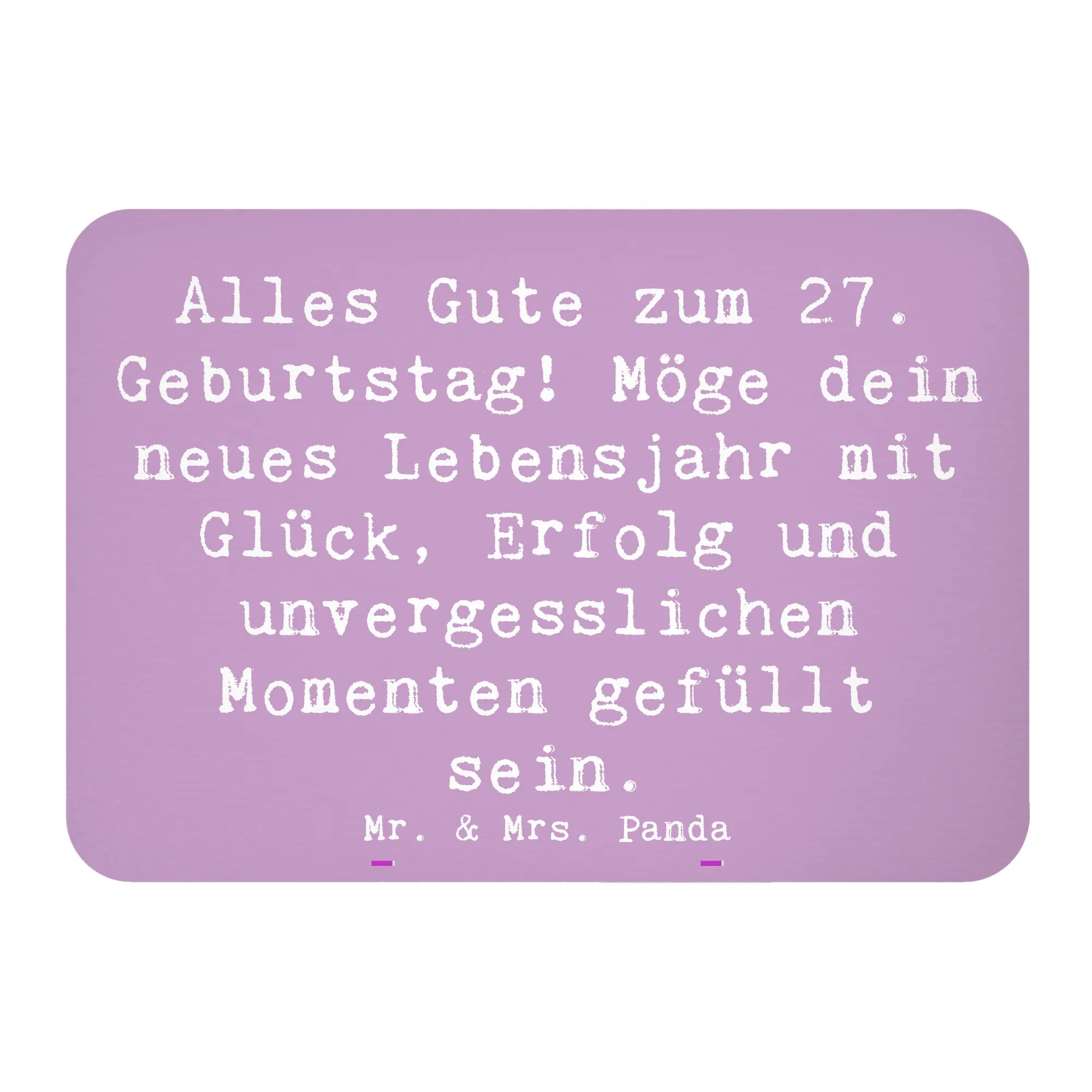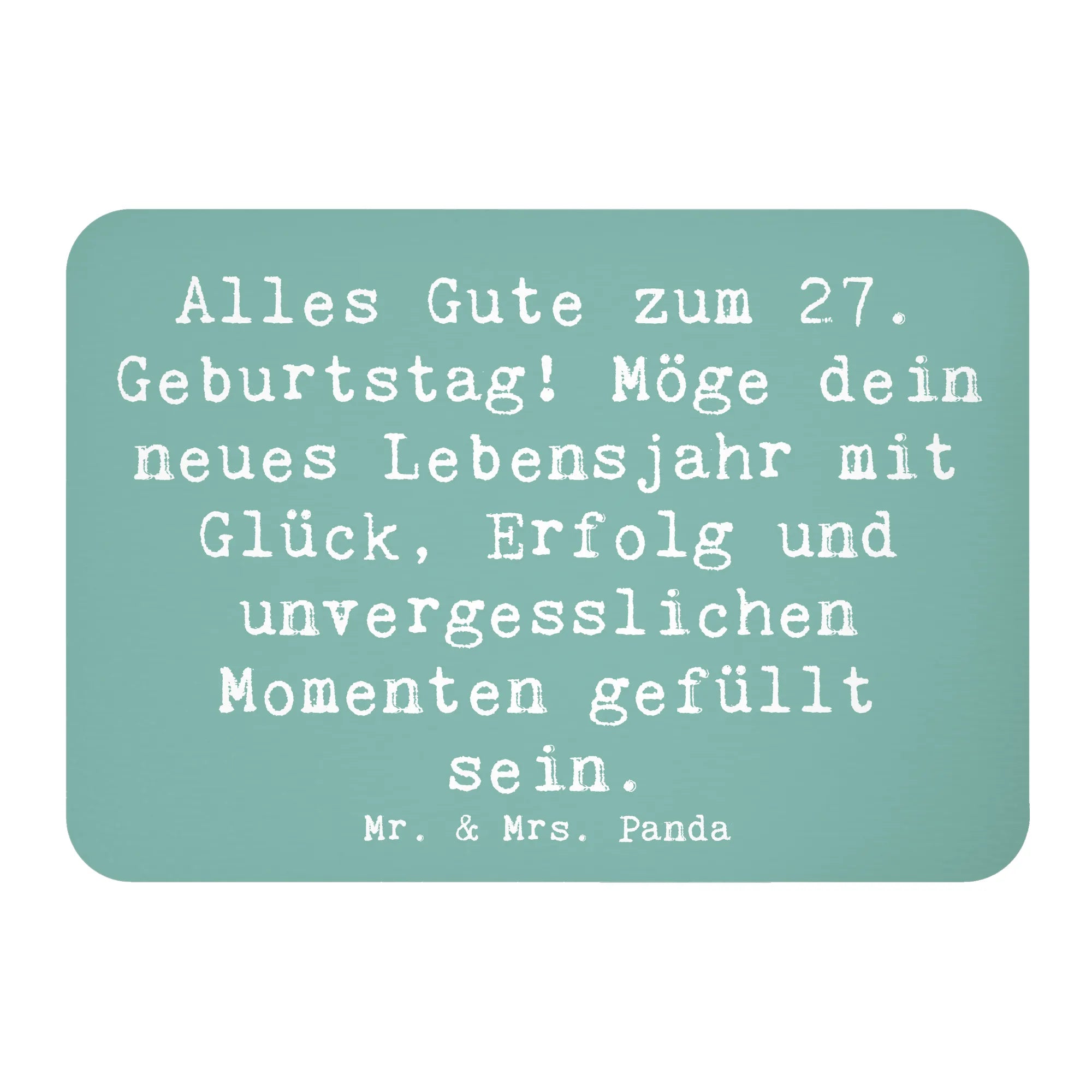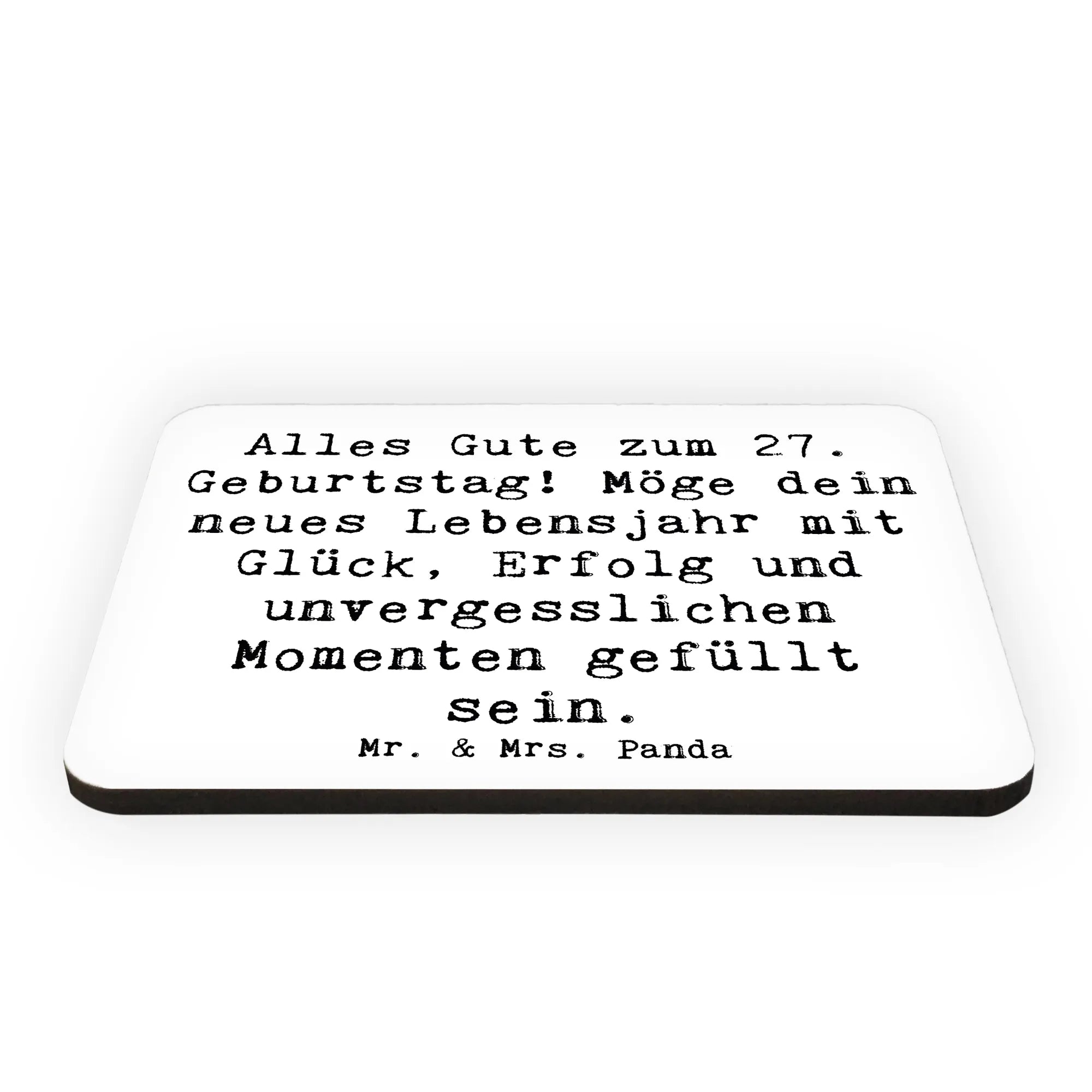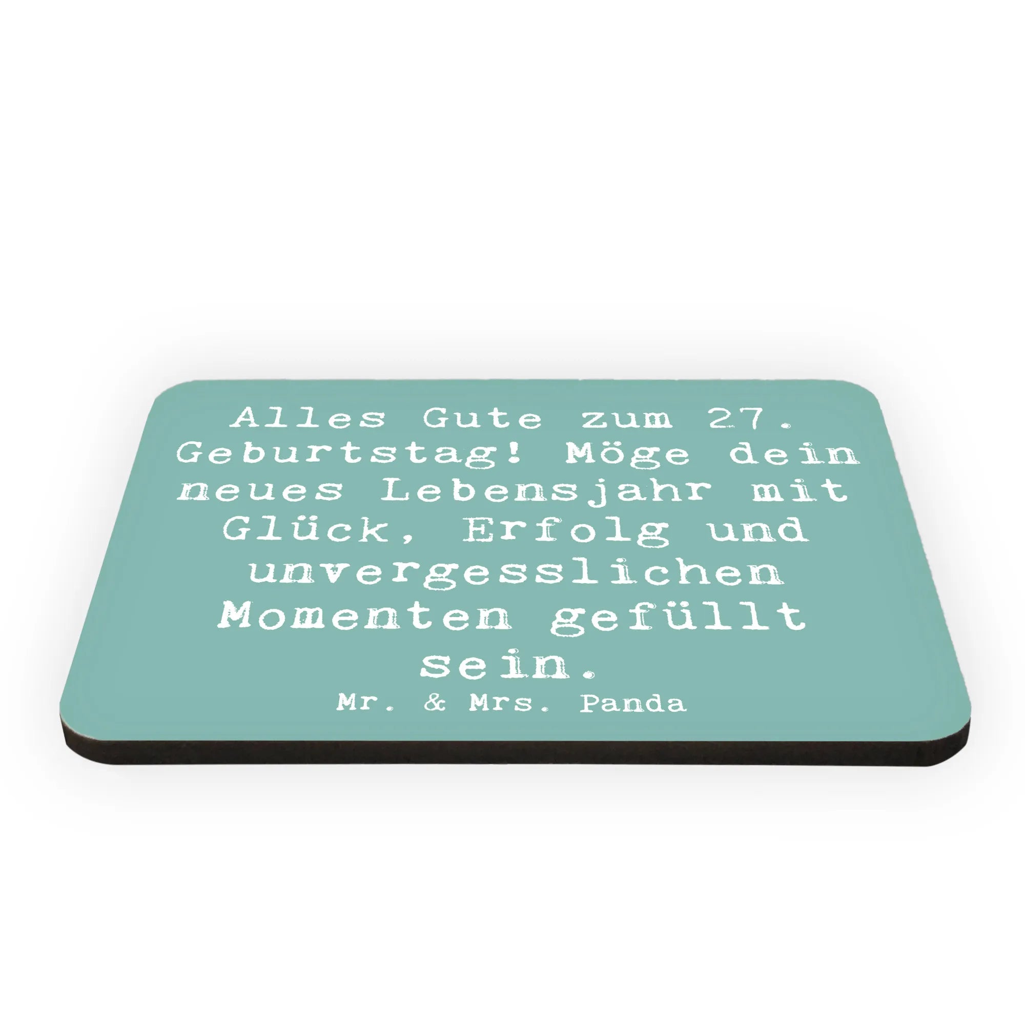 Bist du auf der Suche nach einem besonderen Geschenk für den 27. Geburtstag eines Freundes oder Verwandten? Dann ist unser Kühlschrankmagnet von Mr. & Mrs. Panda genau das Richtige für dich! Mit dem fröhlichen Spruch "Alles Gute zum 27. Geburtstag! Möge dein neues Lebensjahr mit Glück, Erfolg und unvergesslichen Momenten gefüllt sein." hebt er sich von anderen Geschenken ab und bringt ein Lächeln ins Gesicht des Beschenkten.