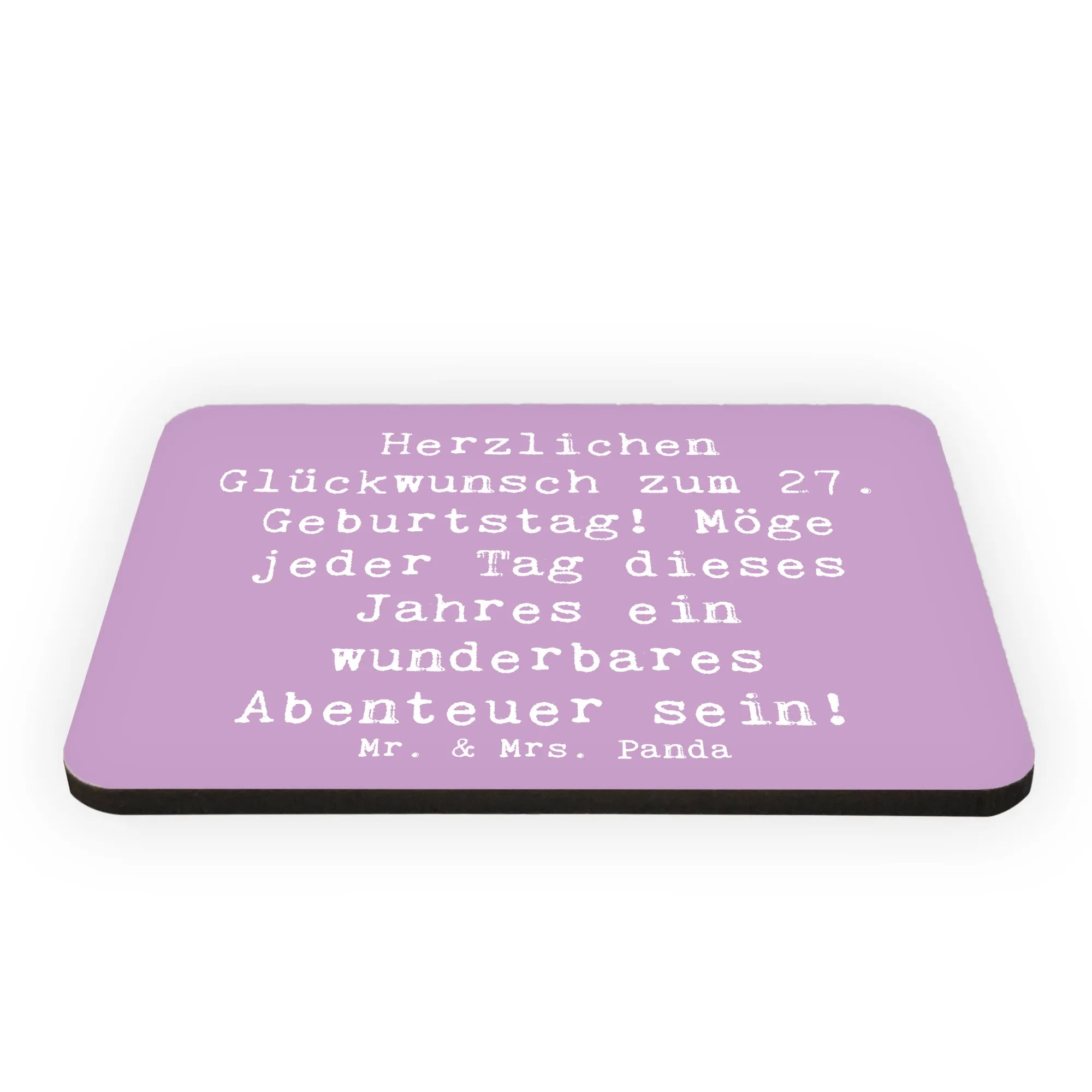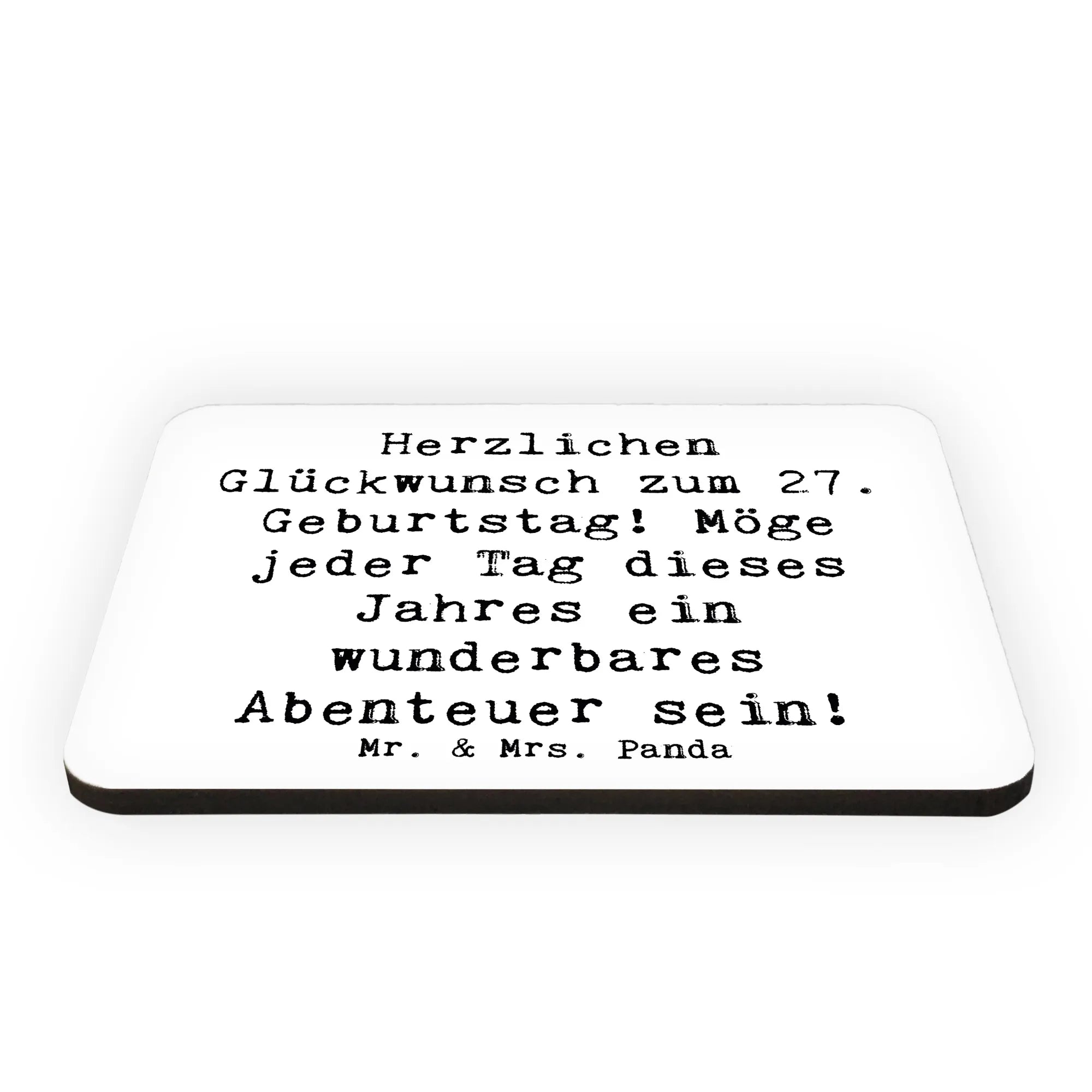 Der Kühlschrankmagnet zum 27. Geburtstag von Mr. & Mrs. Panda ist das perfekte Geschenk für all jene, die diesen besonderen Tag gebührend feiern möchten! Mit dem liebevollen Slogan "Herzlichen Glückwunsch zum 27. Geburtstag! Möge jeder Tag dieses Jahres ein wunderbares Abenteuer sein!" wird jeder Moment an deinem Kühlschrank oder Whiteboard zu einem niedlichen Highlight. Hergestellt aus feinem Holz und in einer handlichen Größe von 52 mm x 74 mm x 5 mm ist er nicht nur praktisch, sondern auch ein echter Blickfang!