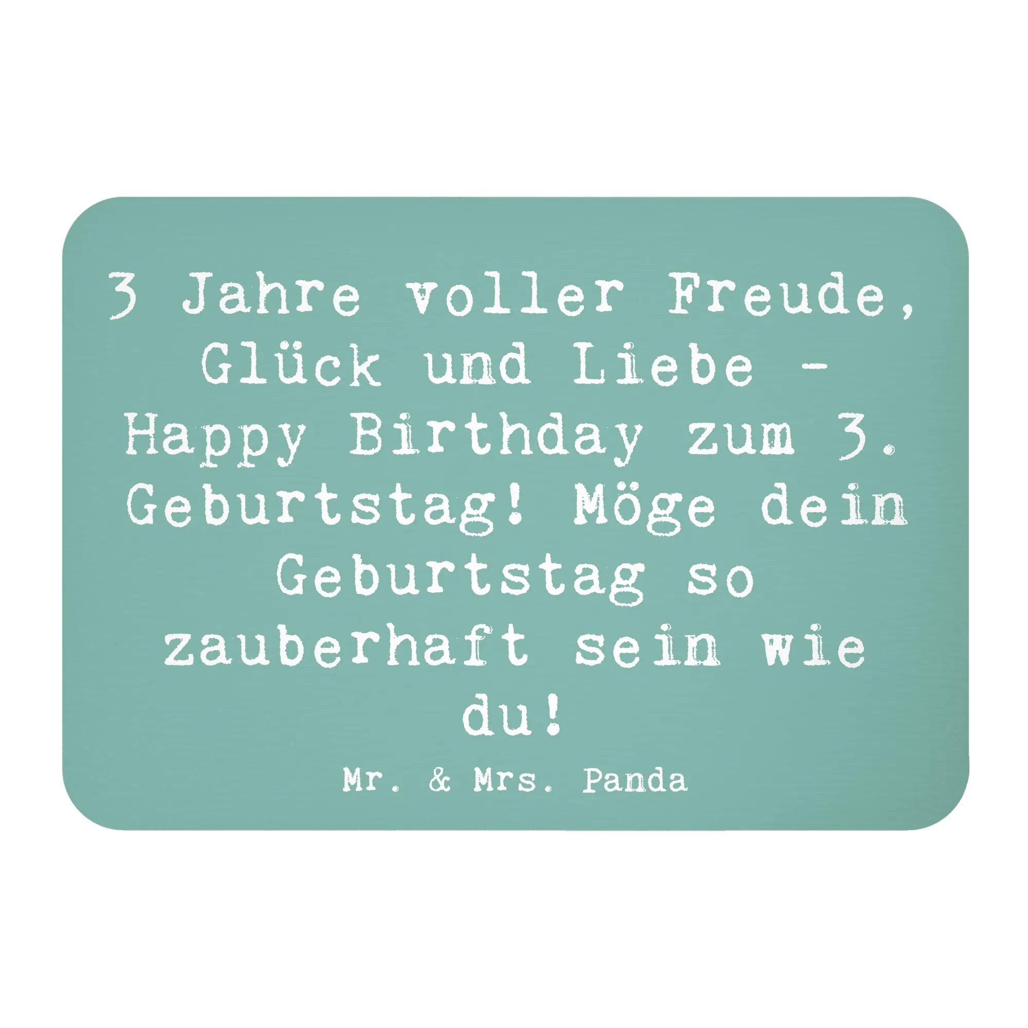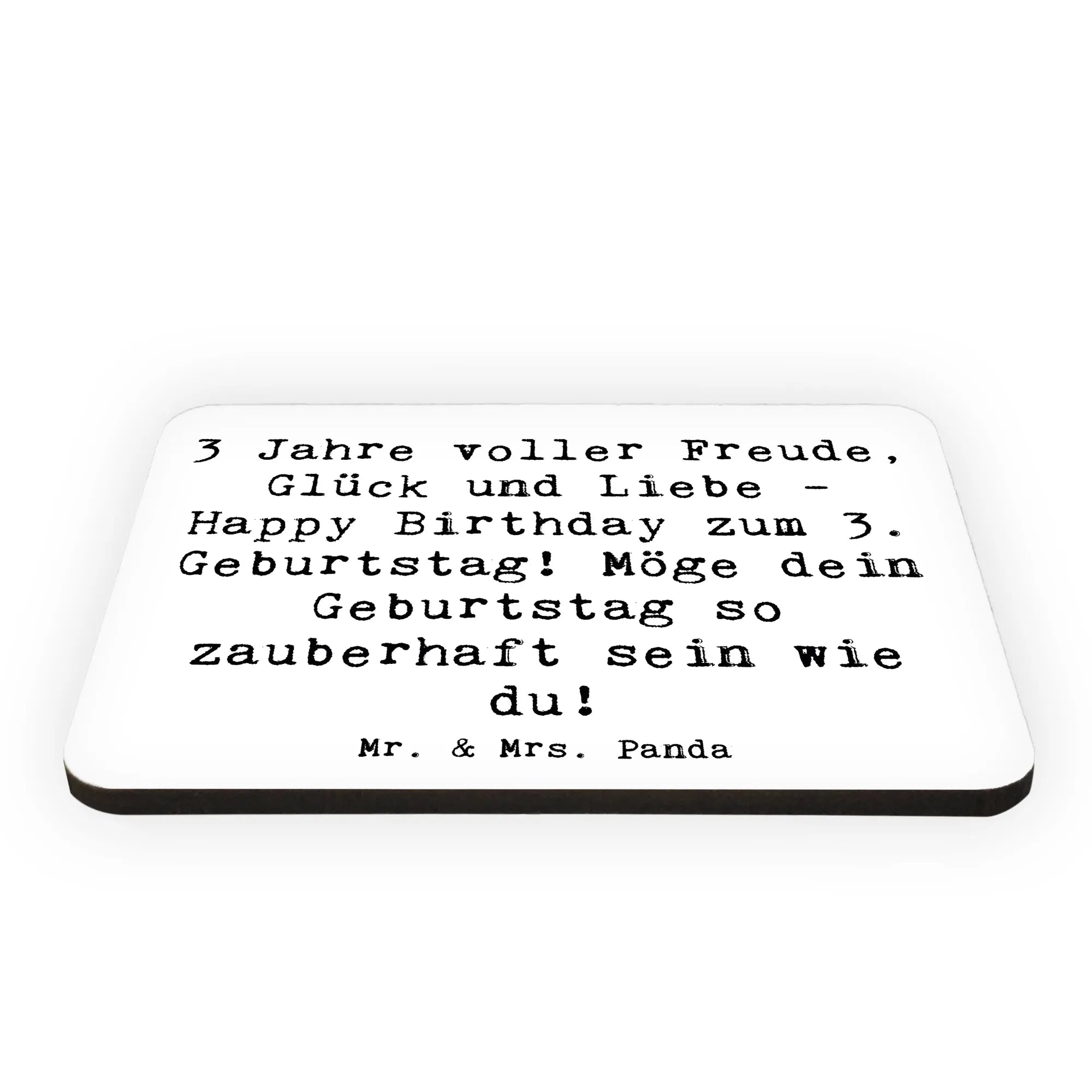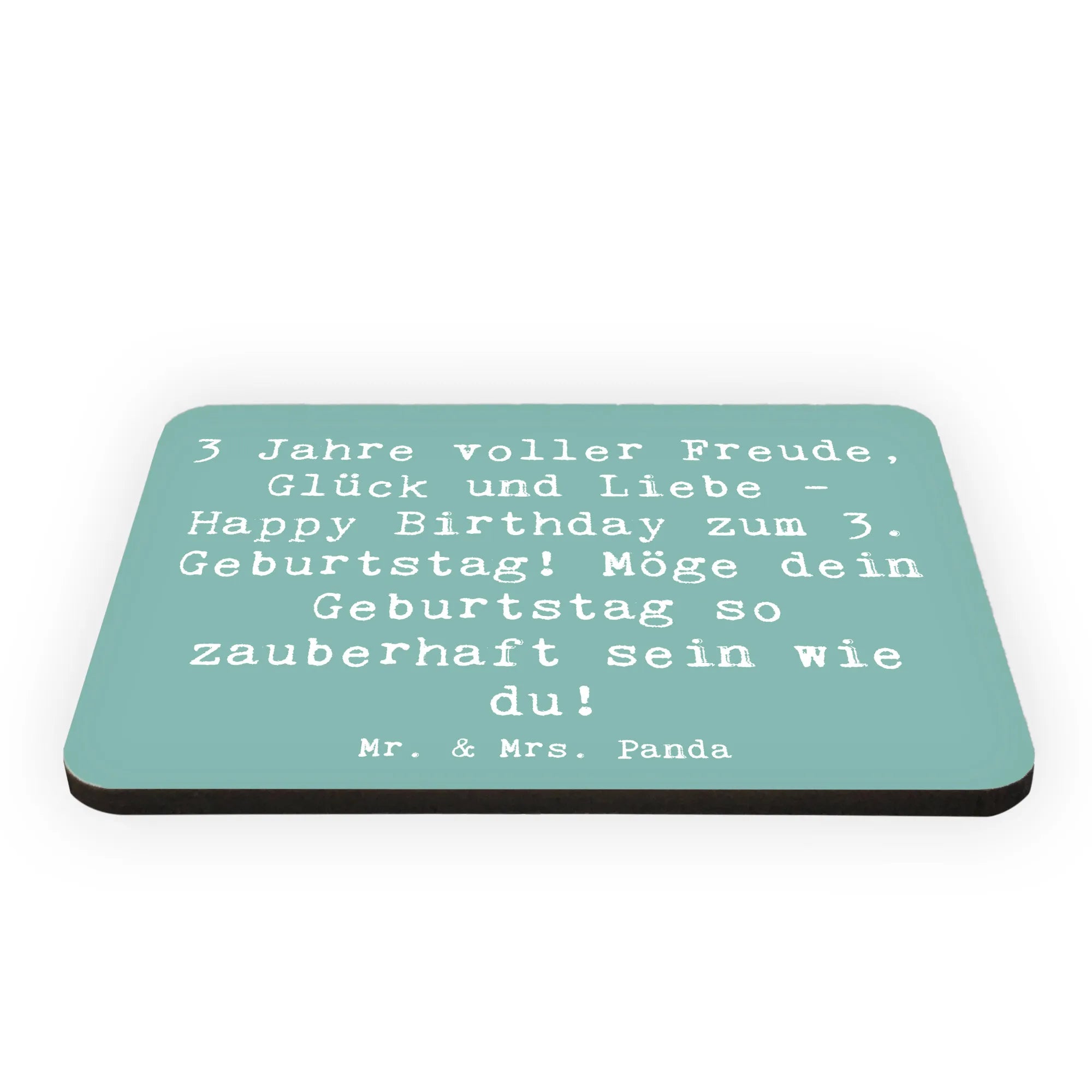 Der Kühlschrankmagnet "3 Jahre voller Freude, Glück und Liebe - Happy Birthday zum 3. Geburtstag! Möge dein Geburtstag so zauberhaft sein wie du!" von Mr. & Mrs. Panda ist das perfekte Geschenk für kleine Geburtstagspiraten und ihre Eltern. Dieser farbenfrohe Deko-Magnet macht nicht nur jede Pinnwand lebendiger, sondern ist auch eine wundervolle Erinnerung an einen besonderen Tag.