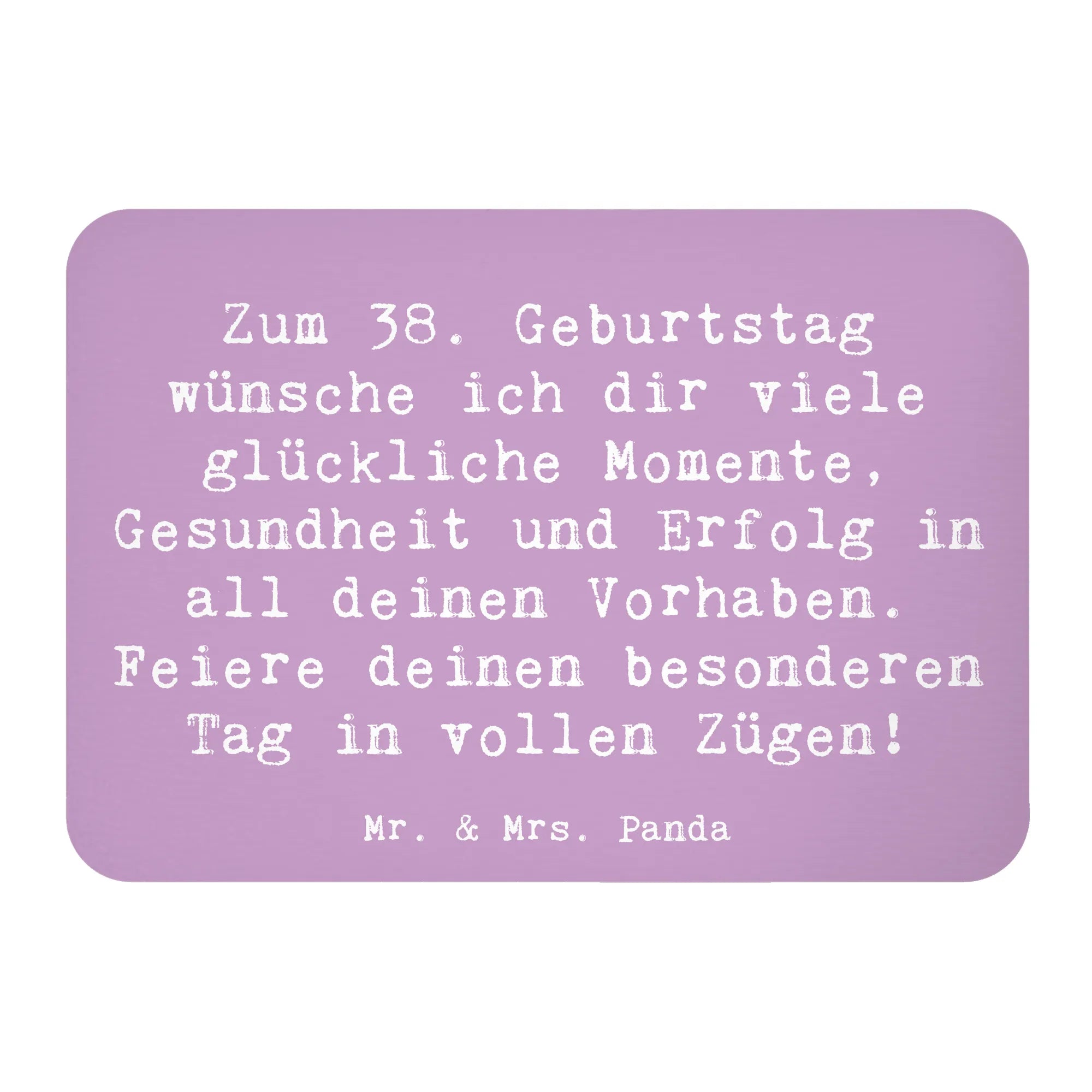 Der magnetische Kühlschrankmagnet "38. Geburtstag" von Mr. & Mrs. Panda ist das perfekte Geschenk, um deinen Liebsten zu ihrem besonderen Tag zu gratulieren. Mit dem liebevoll gestalteten Spruch "Zum 38. Geburtstag wünsche ich dir viele glückliche Momente, Gesundheit und Erfolg in all deinen Vorhaben. Feiere deinen besonderen Tag in vollen Zügen!" bringt dieser Magnet nicht nur Freude, sondern auch eine persönliche Note in jede Küche.