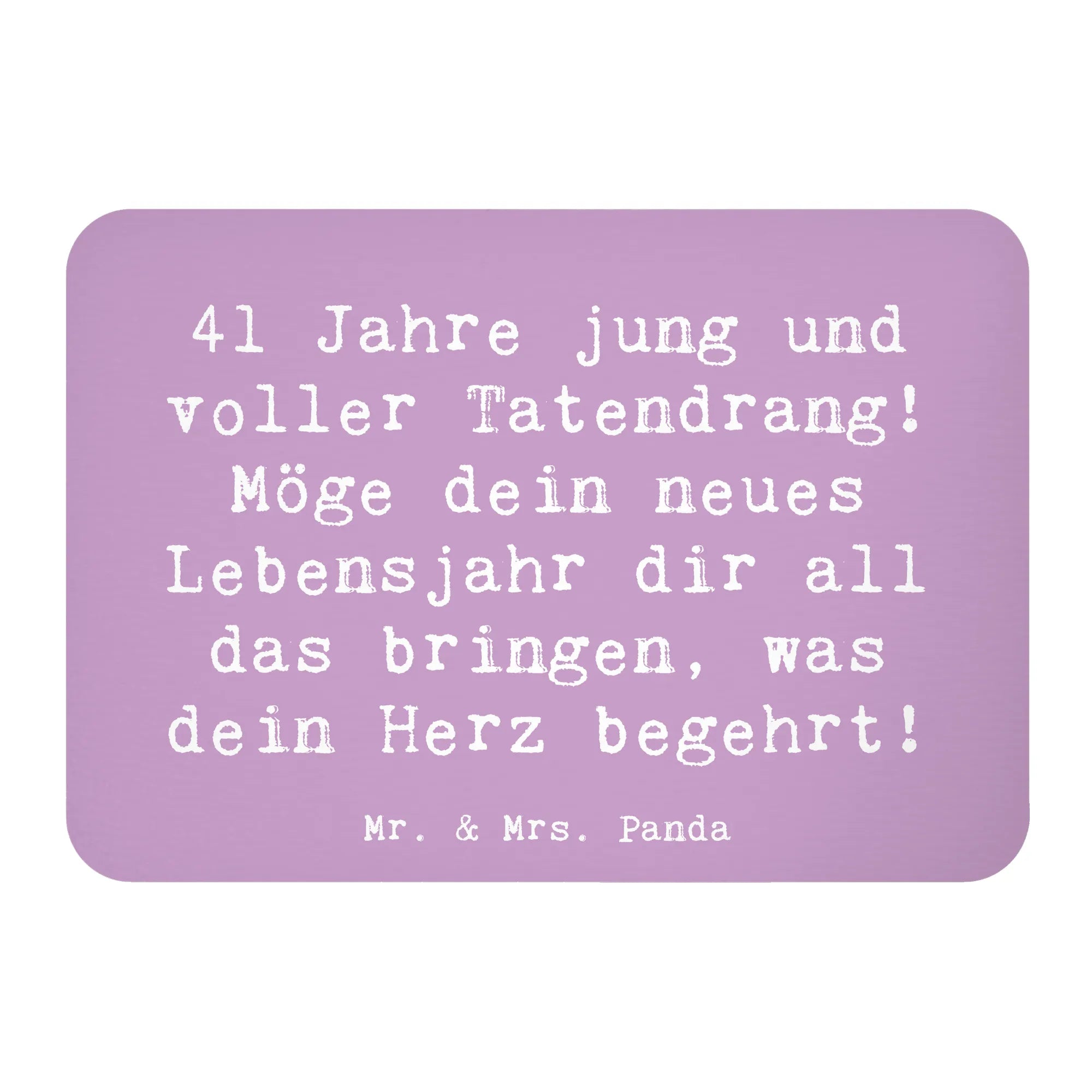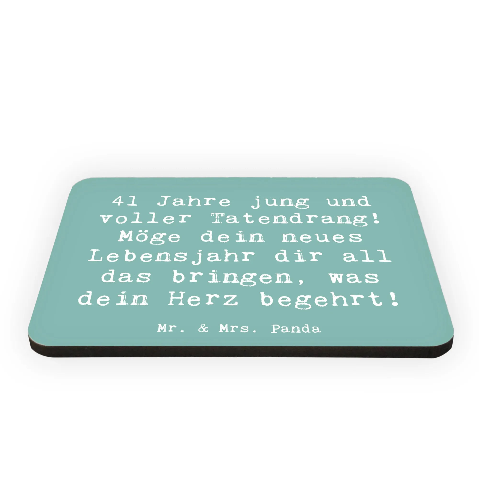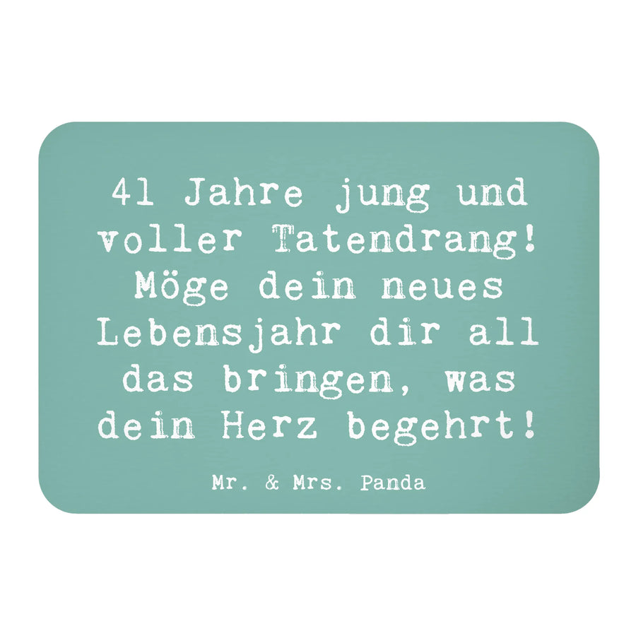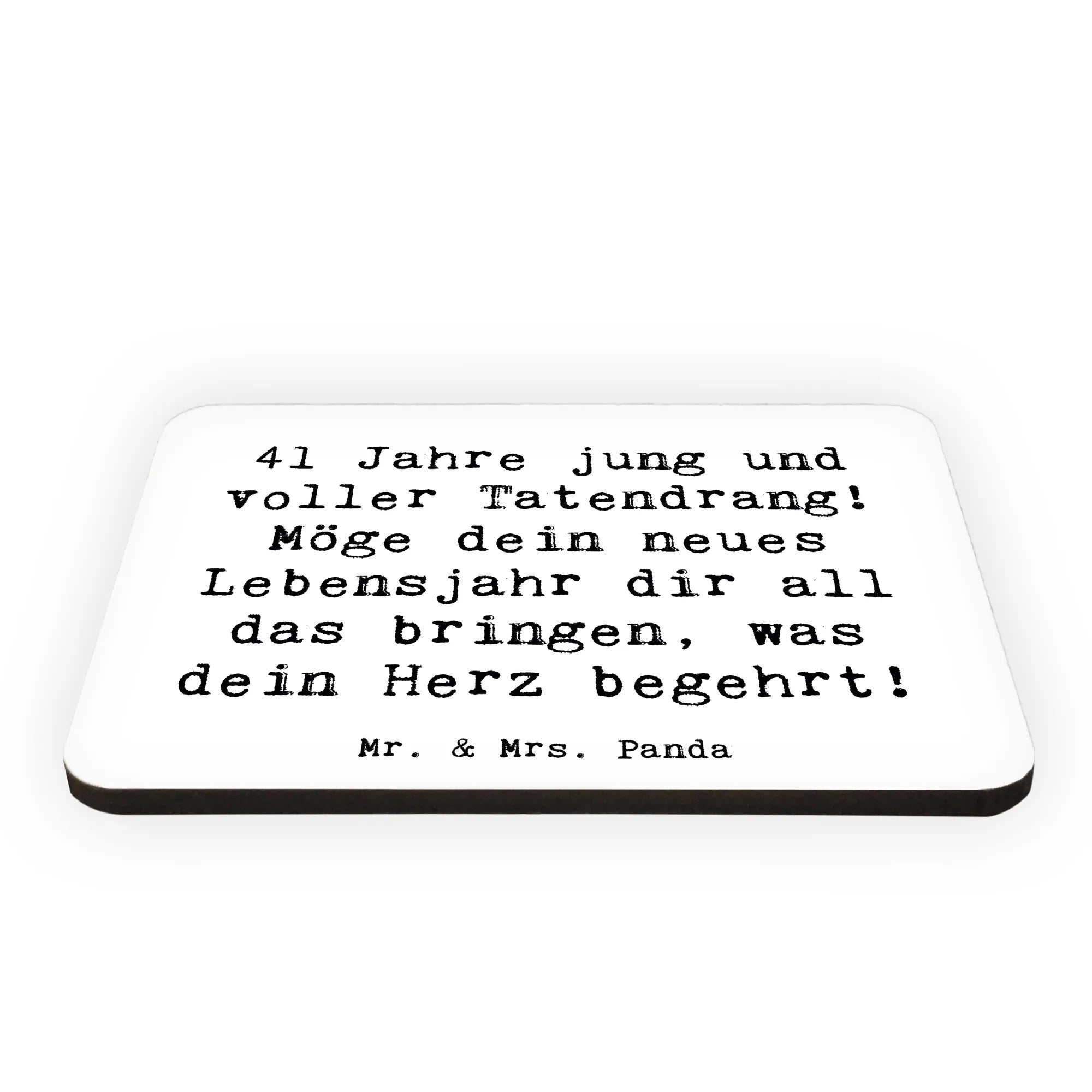 Das perfekte Geschenk für den 41. Geburtstag ist unser Kühlschrankmagnet "41 Jahre jung und voller Tatendrang! Möge dein neues Lebensjahr dir all das bringen, was dein Herz begehrt!" von Mr. & Mrs. Panda. Dieser charmante und praktische Magnet kombiniert Ästhetik und Funktionalität und ist ideal, um Glücksmomente auf dem Kühlschrank oder dem Whiteboard festzuhalten.