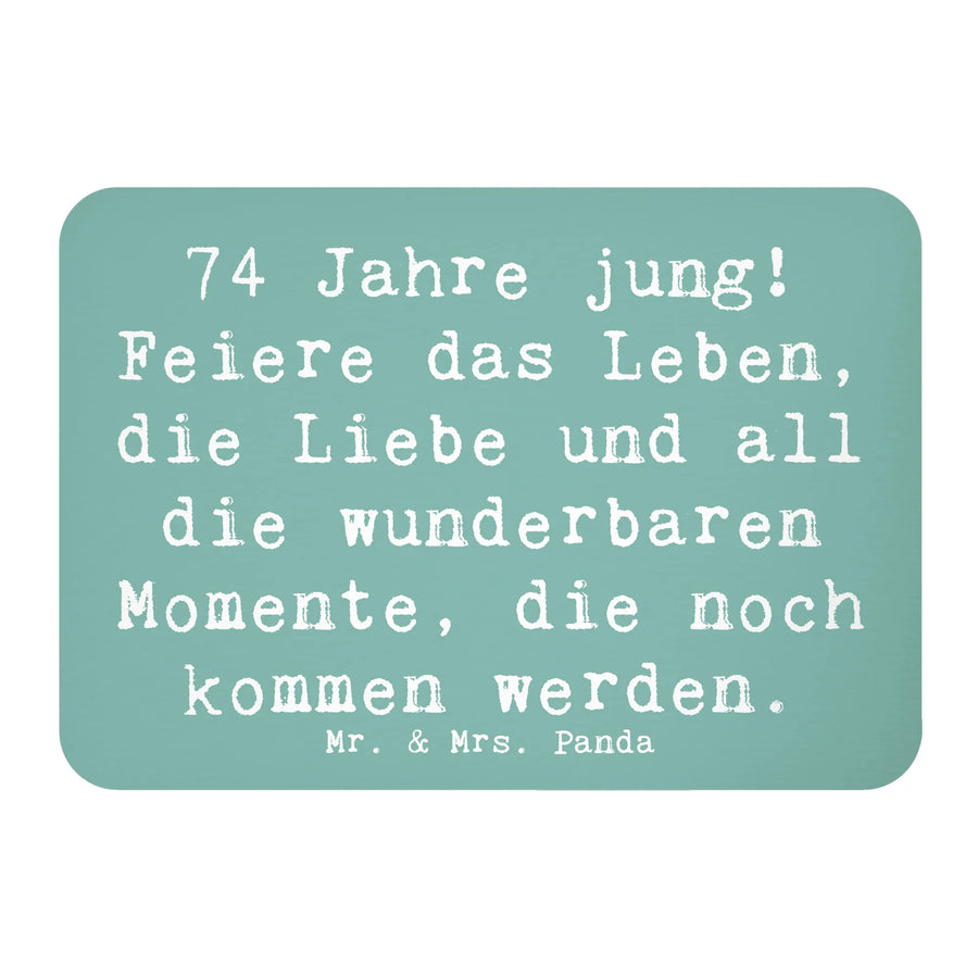 Der Magnet "74 Jahre jung! Feiere das Leben, die Liebe und all die wunderbaren Momente, die noch kommen werden." von Mr. & Mrs. Panda ist das perfekte Geschenk zum 74. Geburtstag! Jeder, der diesen besonderen Tag feiert, wird sich über einen so liebevollen und farbenfrohen Magneten freuen.