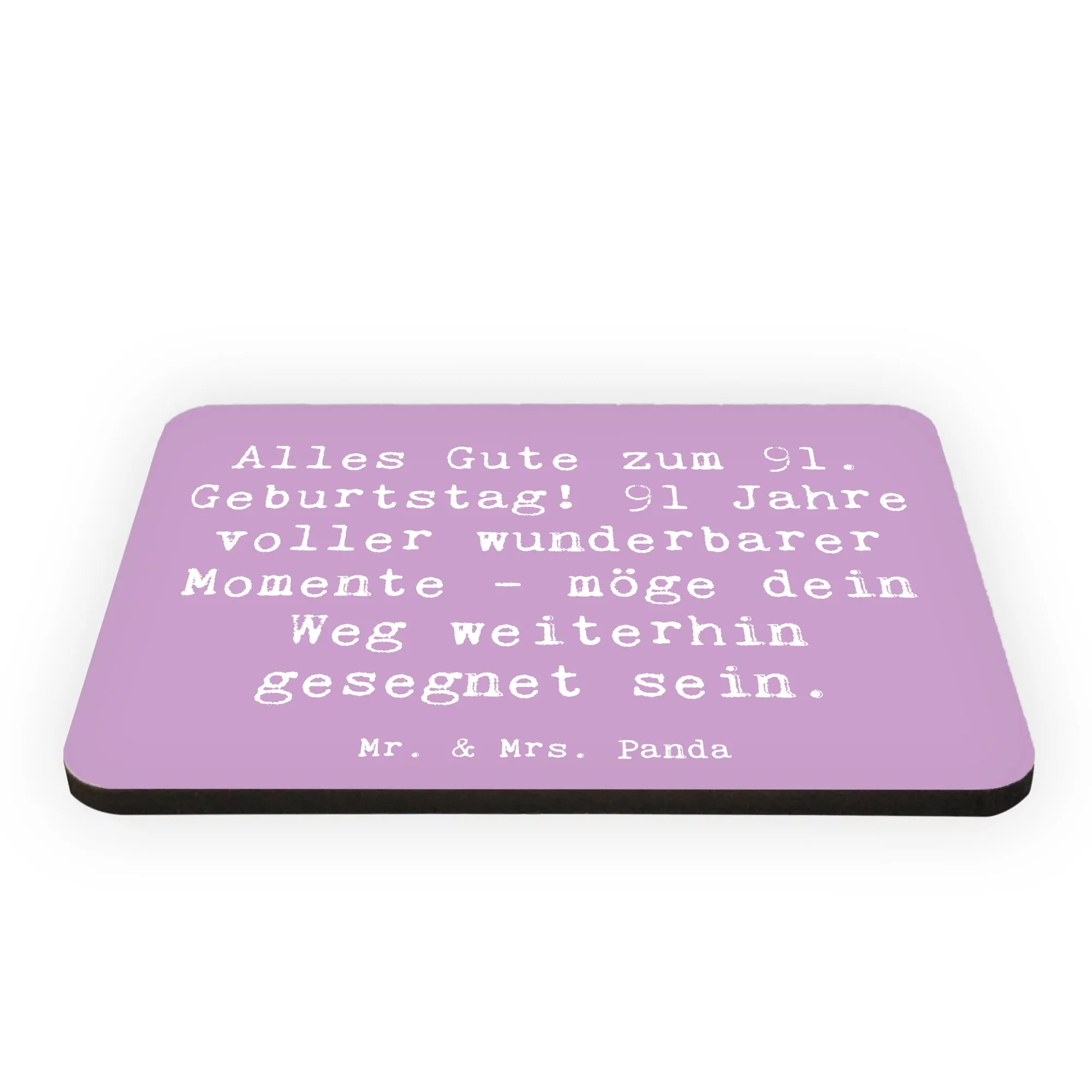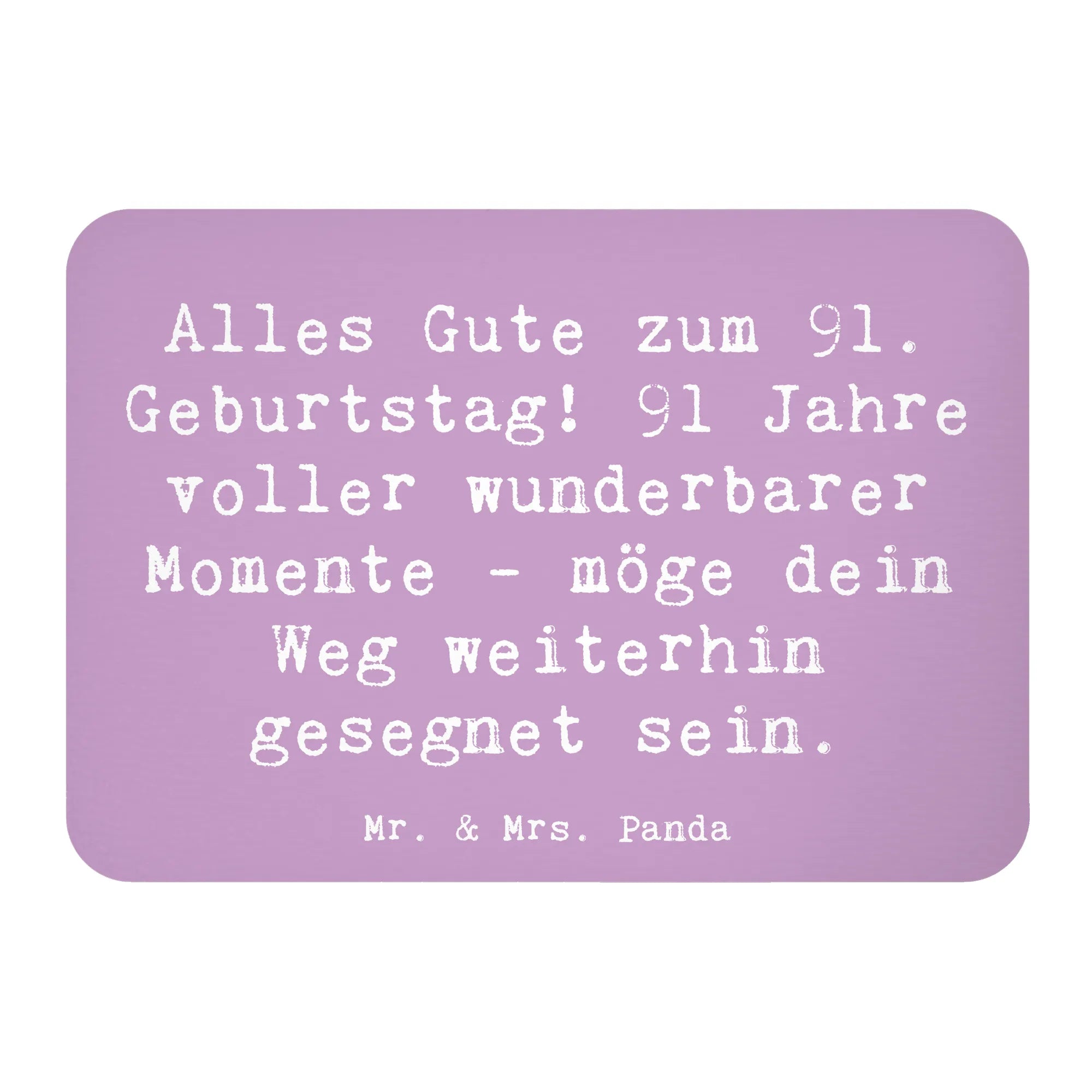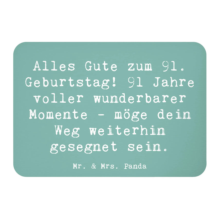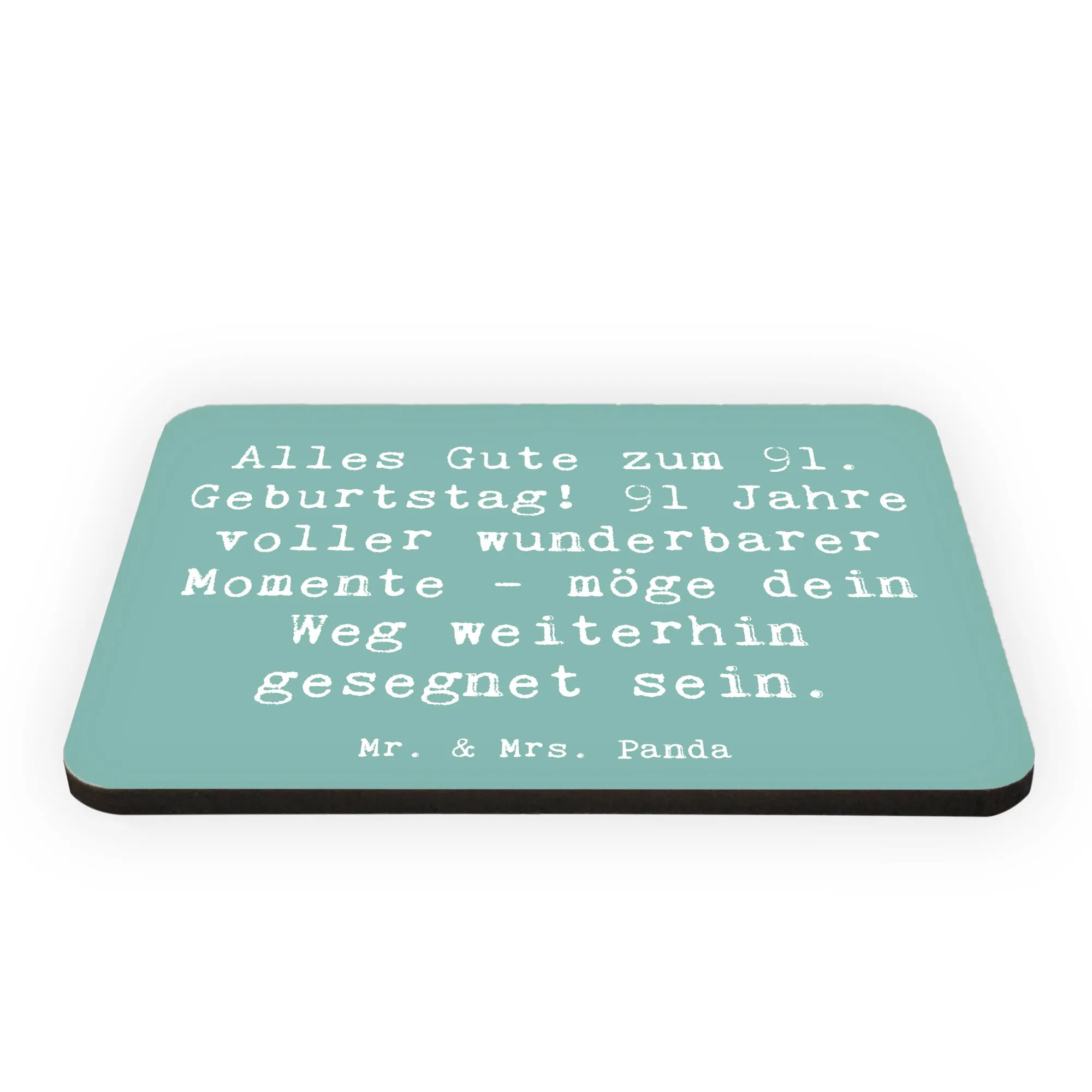Du suchst das perfekte Geschenk für einen ganz besonderen Geburtstag? Dann ist der Kühlschrankmagnet von Mr. & Mrs. Panda mit dem liebevollen Spruch "Alles Gute zum 91. Geburtstag! 91 Jahre voller wunderbarer Momente - möge dein Weg weiterhin gesegnet sein." genau das Richtige! Unser Magnet gehört zur Geburtstagskollektion, die mit liebevoll handgezeichneten Aquarellmotiven und fröhlichen Sprüchen jede Feier zu etwas Besonderem macht. Ob als Deko für das Whiteboard, um Notizen am Kühlschrank anzubringen, oder als einzigartiges Souvenir – dieser Magnet ist vielseitig einsetzbar und ein echter Hingucker.