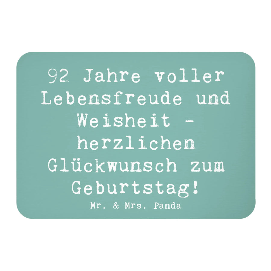 Mit dem Spruch „92 Jahre voller Lebensfreude und Weisheit - herzlichen Glückwunsch zum Geburtstag!“ wird dieser Magnet zum idealen Geburtstagsgruß und ein wunderschönes Erinnerungsstück für deine Liebsten.