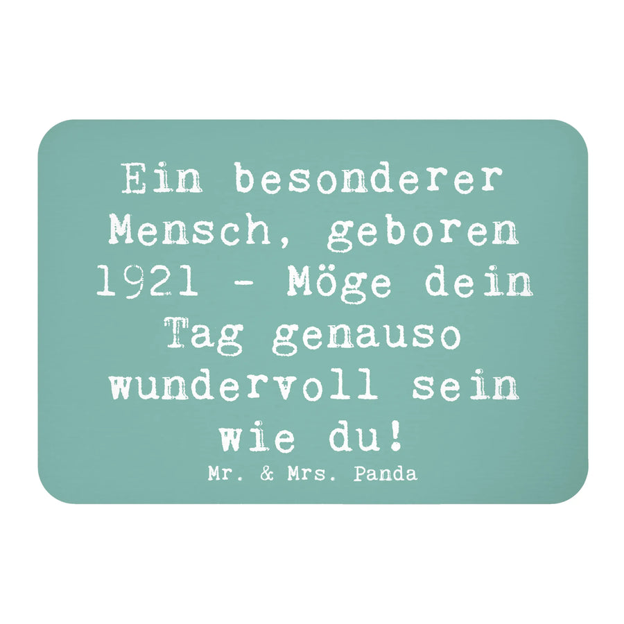 Der Kühlschrankmagnet mit dem liebevollen Motiv 'Ein besonderer Mensch, geboren 1921 - Möge dein Tag genauso wundervoll sein wie du!' aus der besonderen Geburtstag Geburtsjahr Kollektion von Mr. & Mrs. Panda ist das perfekte Geschenk für jeden, der 2021 seinen 100. Geburtstag feiert! 🥳