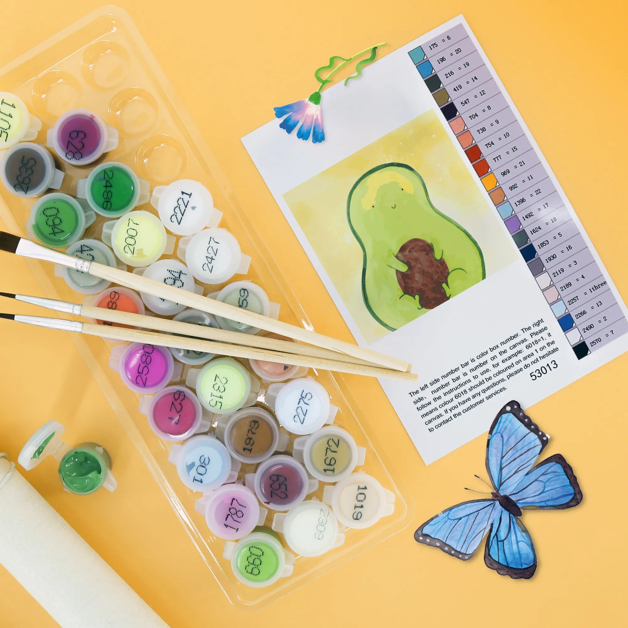 Besonders schön daran ist, dass du dein eigenes Meisterwerk schaffen kannst, das nicht nur ein Kunstwerk ist, sondern auch eine Aussage, denn die Avocado steht für gesundes Essen und Lebensfreude. Das Malen nach Zahlen mit der Avocado bringt einen Hauch Frische und Positivität in jedes Zuhause.