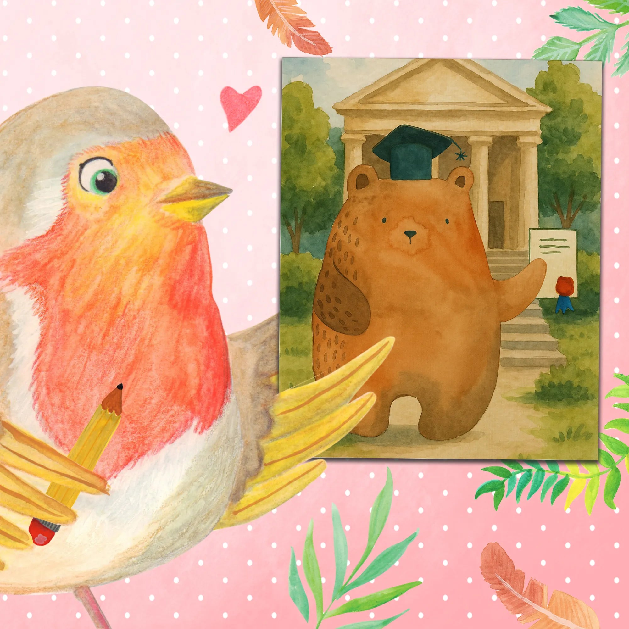 Unser Prüfungsbär ist der Inbegriff von Freude und Erfolg! Mit einem strahlenden Lächeln zeigt er stolz sein Abschlusszeugnis und vermittelt so, dass Prüfungen zu meistern nicht nur möglich ist, sondern auch Spaß machen kann. Er erinnert uns daran, dass der Weg zum Ziel oft steinig ist, aber mit einem starken Willen und viel Herz kann man ihn meistern. Seine liebenswerte Art und Weise bringt Licht in jeden Raum und motiviert jeden, der ihn sieht, an sich zu glauben. Zeige deinen Erfolg mit diesem niedlichen Bär, der für alles steht, was man erreicht, wenn man seinen Träumen treu bleibt. Egal, ob du für das Abitur oder eine andere Prüfung lerntest, unser Prüfungsbär wird dich immer daran erinnern, wie toll es ist, seine Ziele zu erreichen!