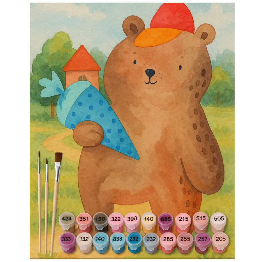 Malen nach Zahlen Bär Schultüte Design - No frame - 24 Farben (Standard)
