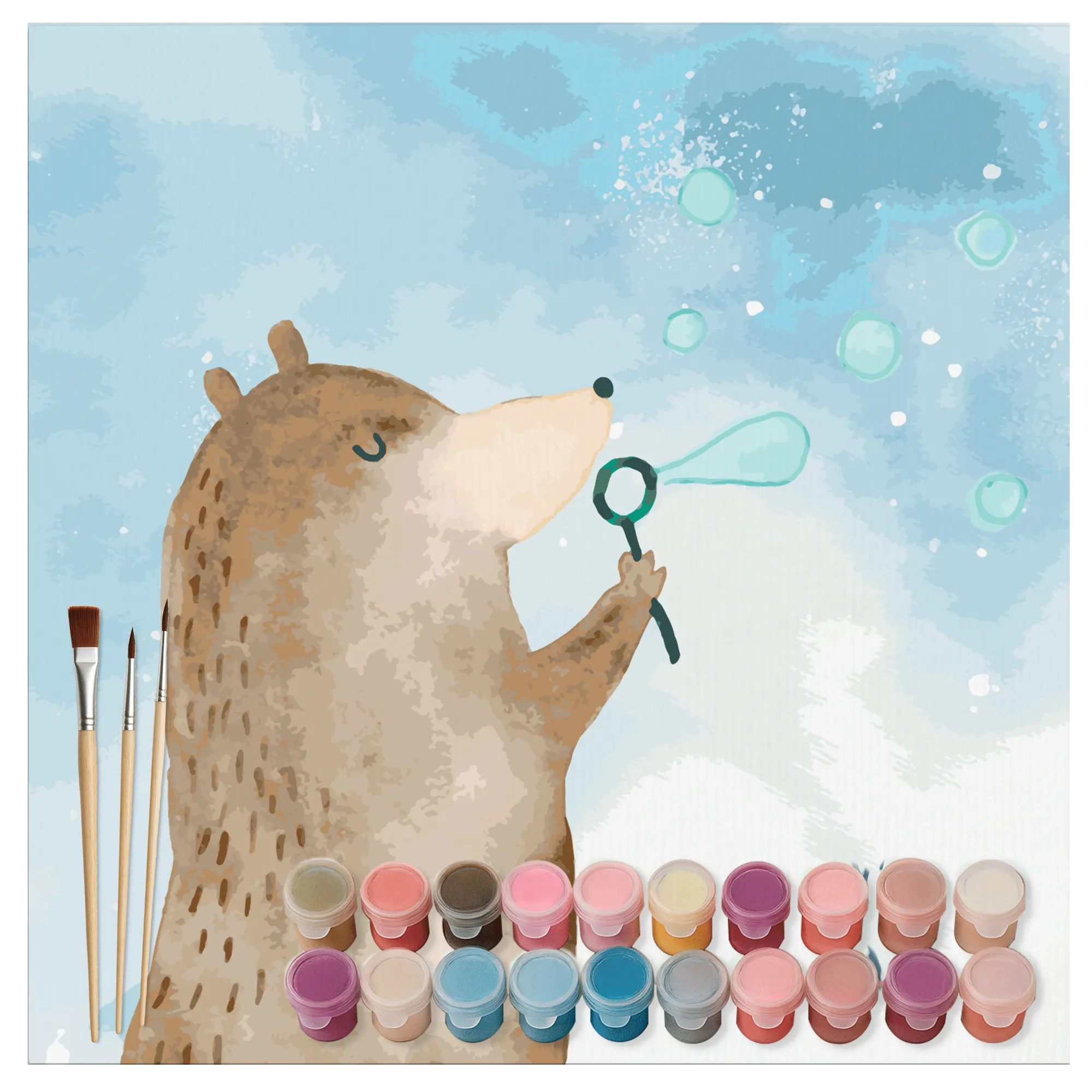 Das Malen nach Zahlen Set mit dem süßen Bären, der Seifenblasen bläst, ist das perfekte Geschenk für kreative Köpfe jeden Alters! 🎨