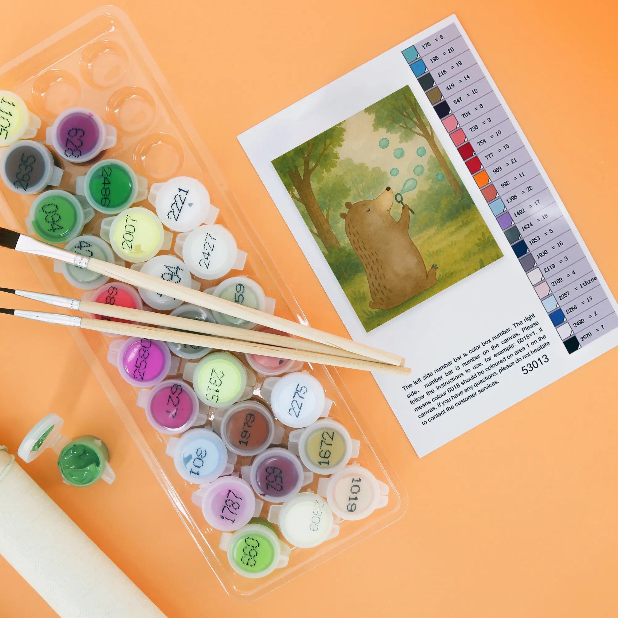 Malen nach Zahlen Bär Seifenblasen Design - No frame - 24 Farben (Standard)