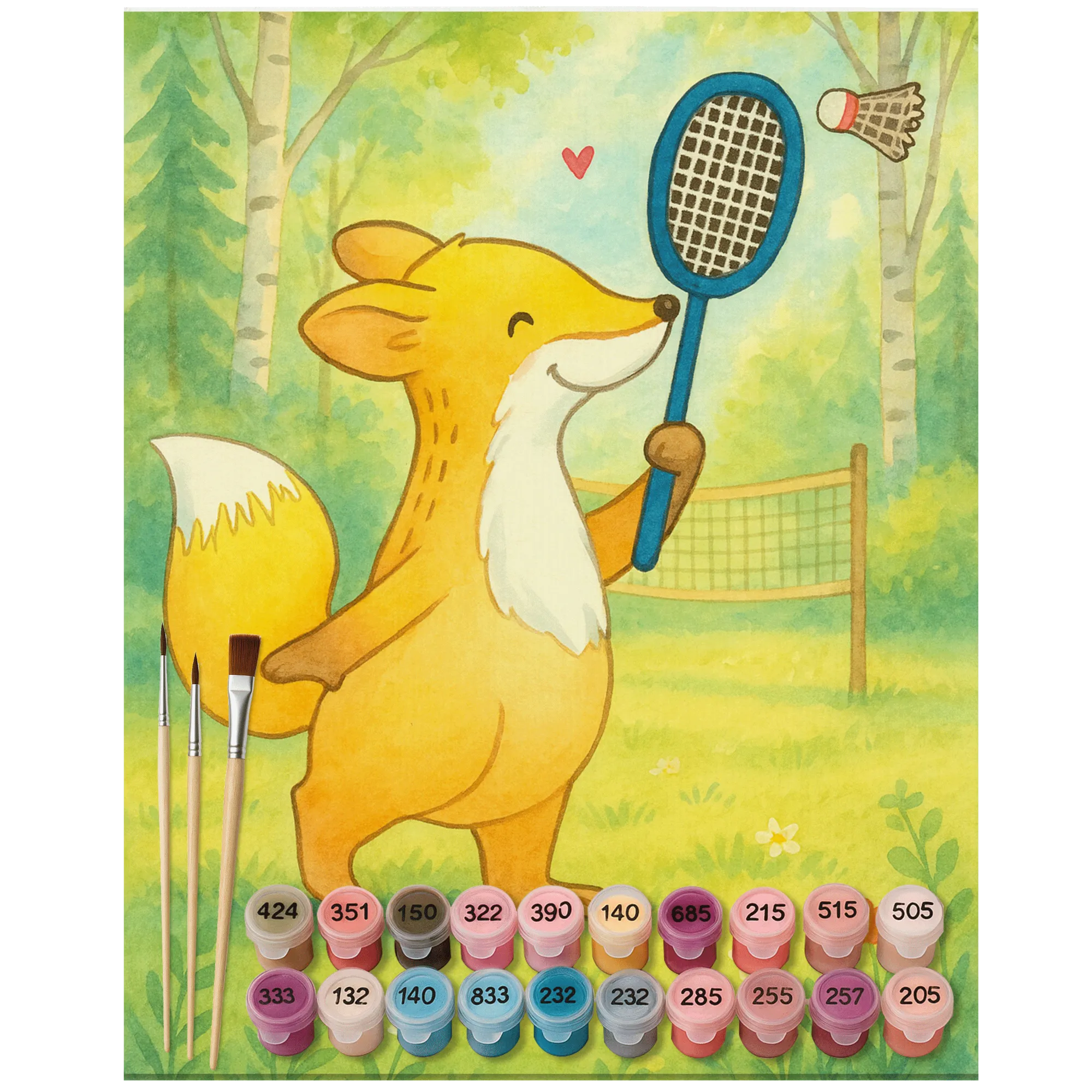 Malen nach Zahlen Fuchs Federball spielen Design - No frame - 24 Farben (Standard)