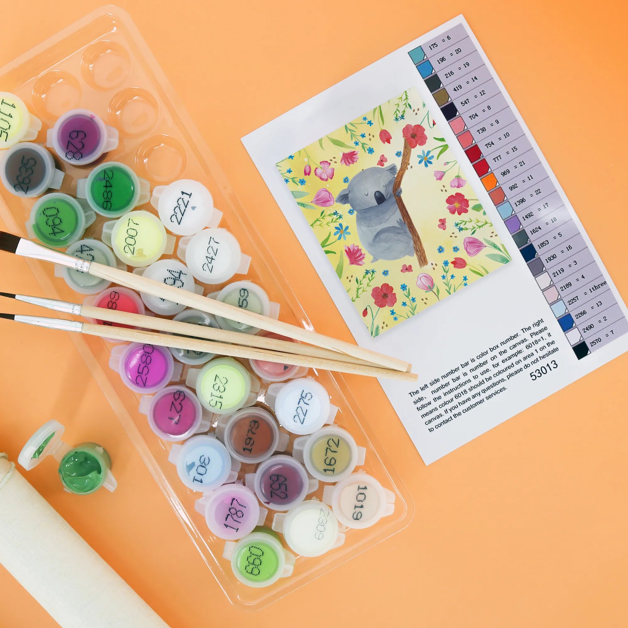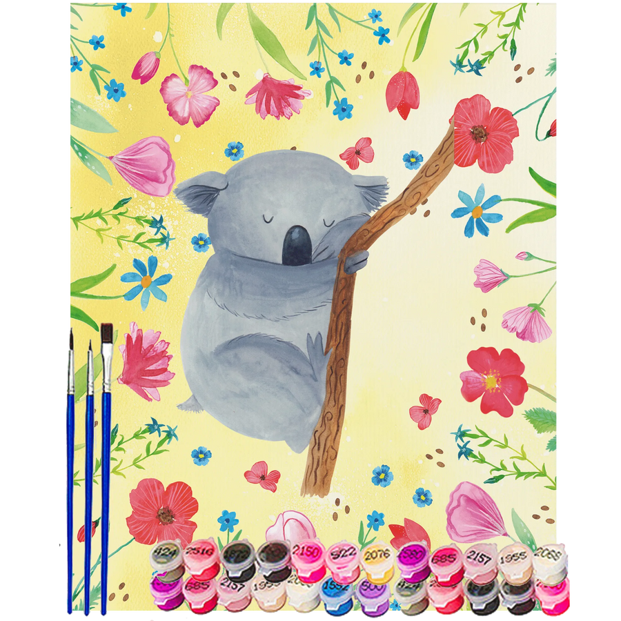 Stell Dir vor, wie der Koala sanft träumt und sich in seinem Traumland verliert – genau das kannst Du mit diesem Set festhalten! Ob als Hobby oder als entspannendes Projekt, dieses Malen nach Zahlen Set bringt Freude und gute Laune! Es enthält alles, was Du zum Malen benötigst: eine stabile Leinwand, die Farben, Pinsel und eine detaillierte Anleitung.
