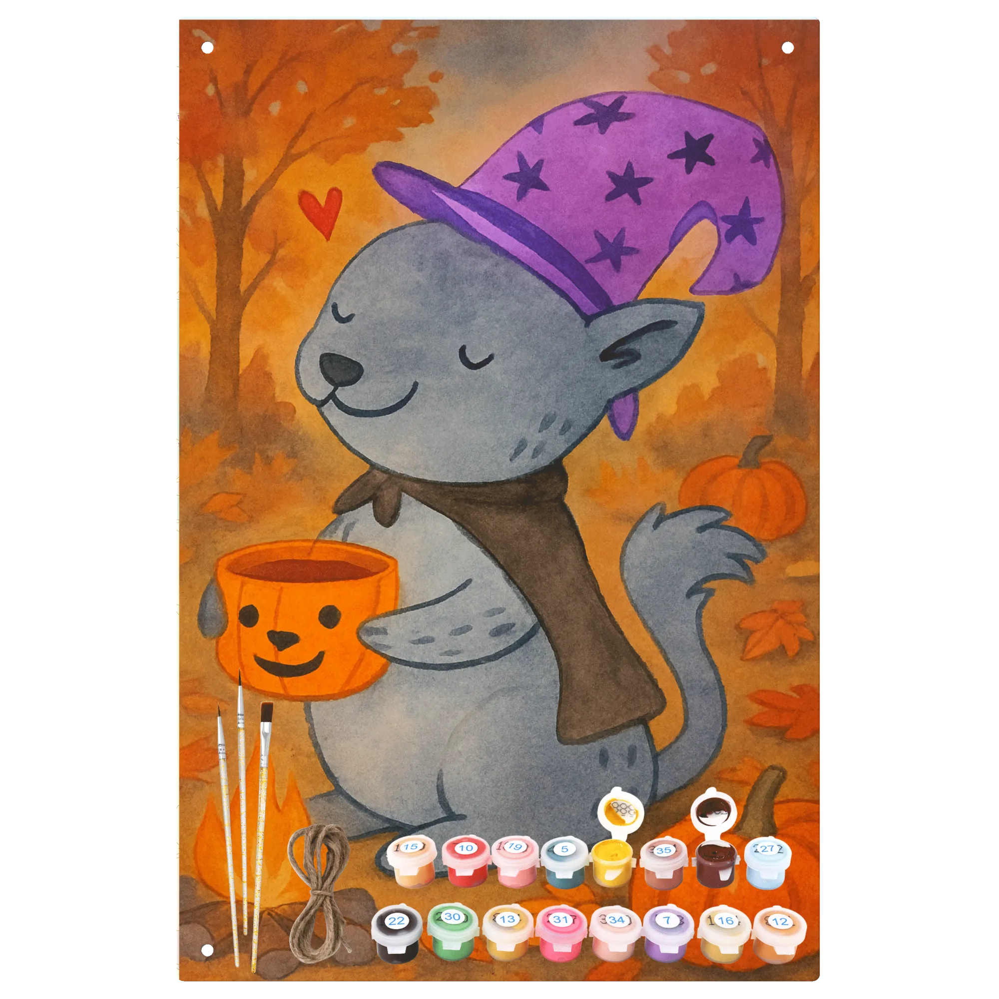Malen nach Zahlen Metallschild Kater Kaffee Design Baseln, DIY, Kunstwerk, Malen, Künstler, Bastelidee, Ausmalbild, Malen nach Zahlen, Kreativität, Halloween, Deko, Martinssingen, Dekoration, Geschenke, Schenken, Kaffee, Kater, Magie, Hexe