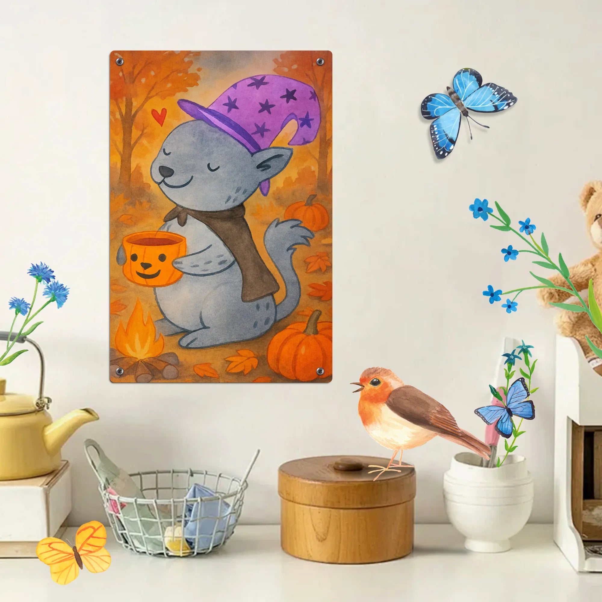 Beobachte unseren liebevollen Kater Kaffee, der auf seine ganz eigene Weise die Magie des Alltags verkörpert. Mit seinem lila Hexenhut, der mit funkelnden Sternen geschmückt ist, und seiner beliebten Kürbistasse vermittelt er das Gefühl von Wärme und Geborgenheit. Über ihm schwebt ein rotes Herz, das die liebevolle Atmosphäre um ihn verstärkt. Dieser Kater zeigt uns, dass das Leben auch in den einfachsten Momenten zauberhaft sein kann – wenn wir die Zeit finden, um mit einer Tasse Kaffee und einem Lächeln im Herzen innezuhalten. Lass dich von seiner entspannten Art inspirieren und entdecke die kleinen Freuden, die das Leben bereithält. Egal, ob du allein bist oder gute Gesellschaft hast, dieser Kater Kaffee ist der perfekte Begleiter für jeden gemütlichen Moment, der mit einem warmen Getränk gewürzt ist.