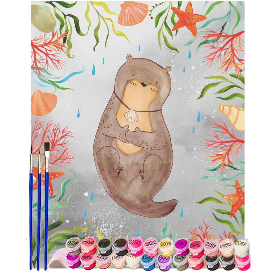 Taste dich mit diesem Produkt an die Welt der Kunst heran und entdecke, wie viel Freude das Ausmalen macht. Verpasse nicht die Chance, deiner Kreativität freien Lauf zu lassen und mache dir oder jemandem, den du liebst, eine ganz besondere Freude mit dem 'Otter mit Muschelmedaillon' Malen nach Zahlen Set von Mr. & Mrs. Panda. Lass die Farben sprechen und tauche ein in die faszinierende Welt der Otter!
