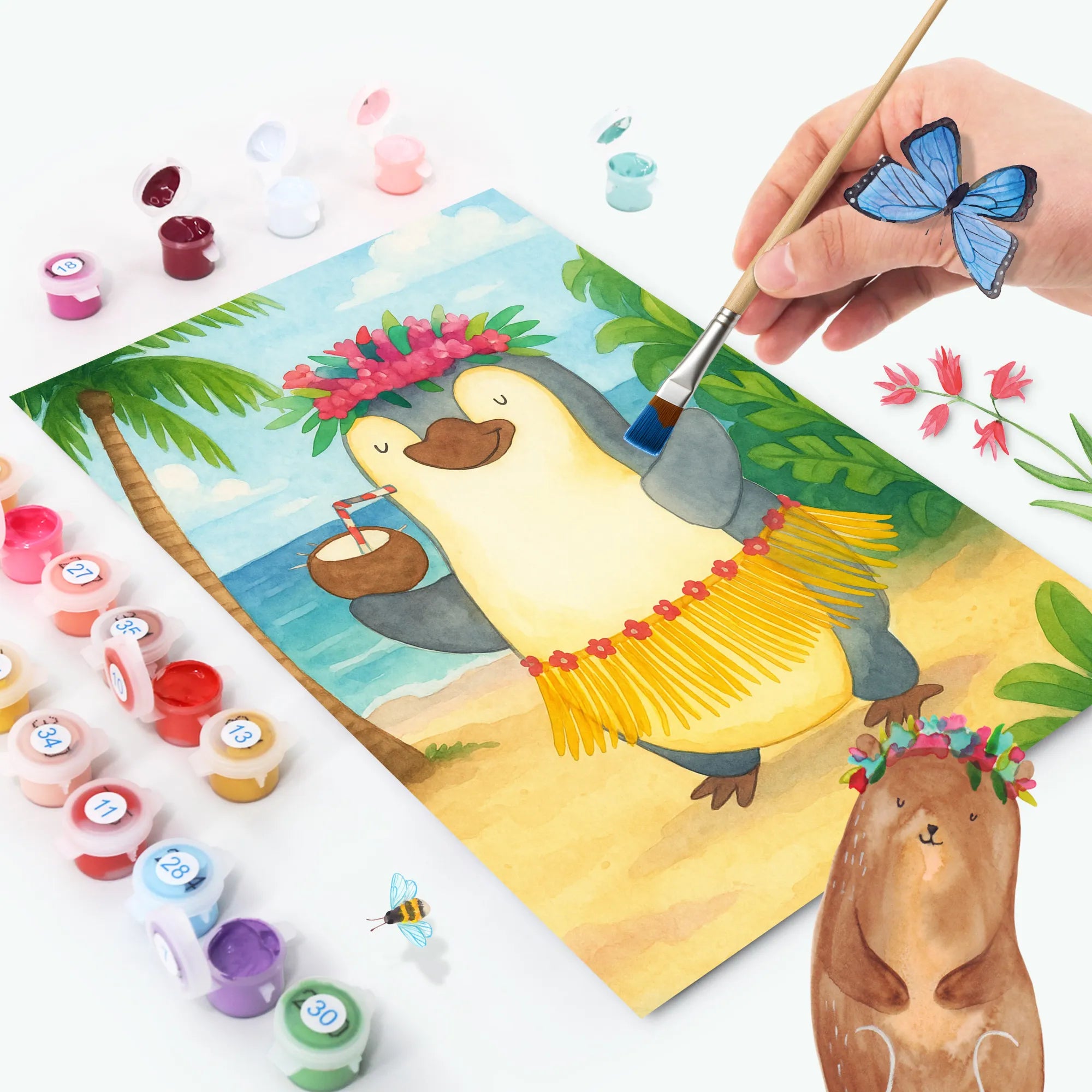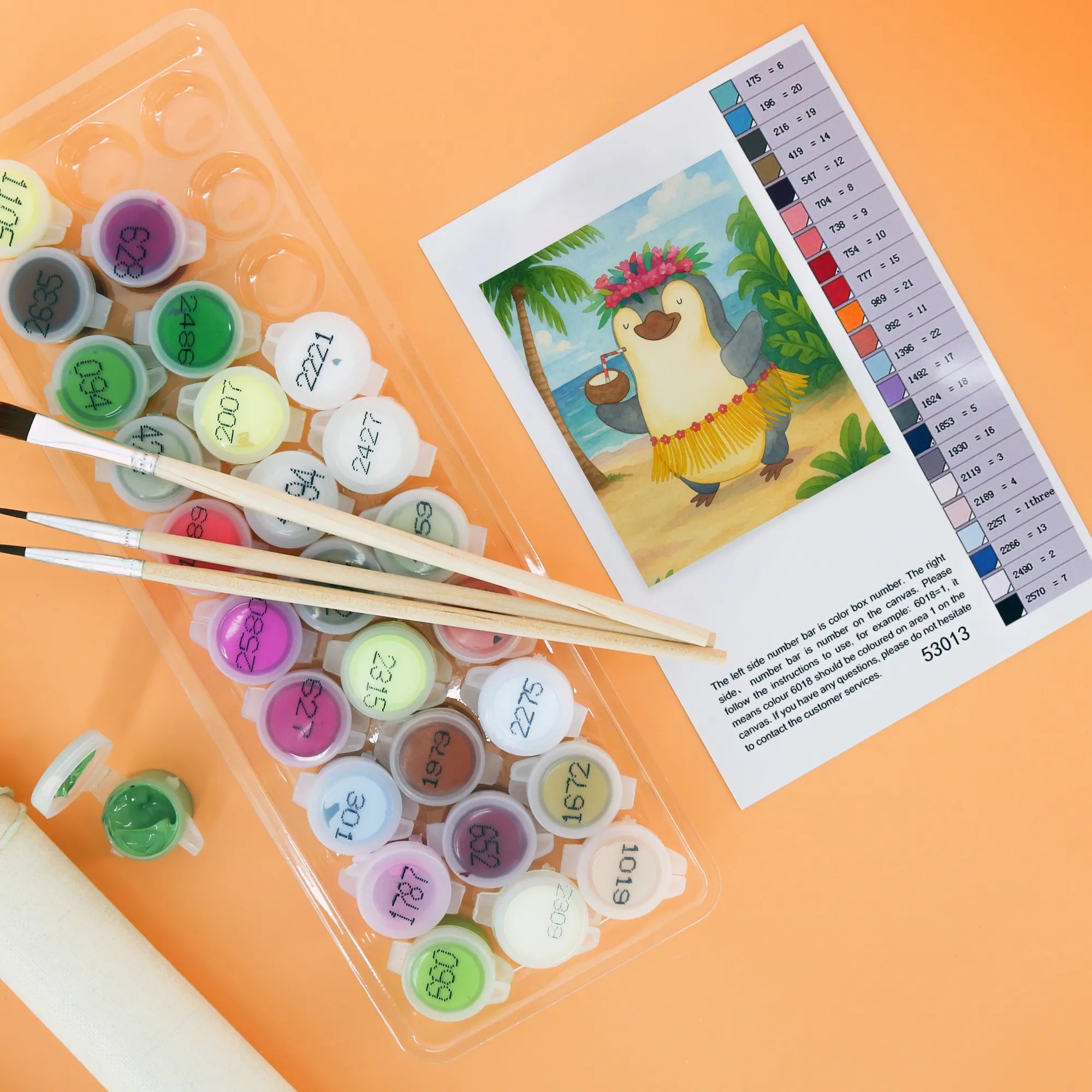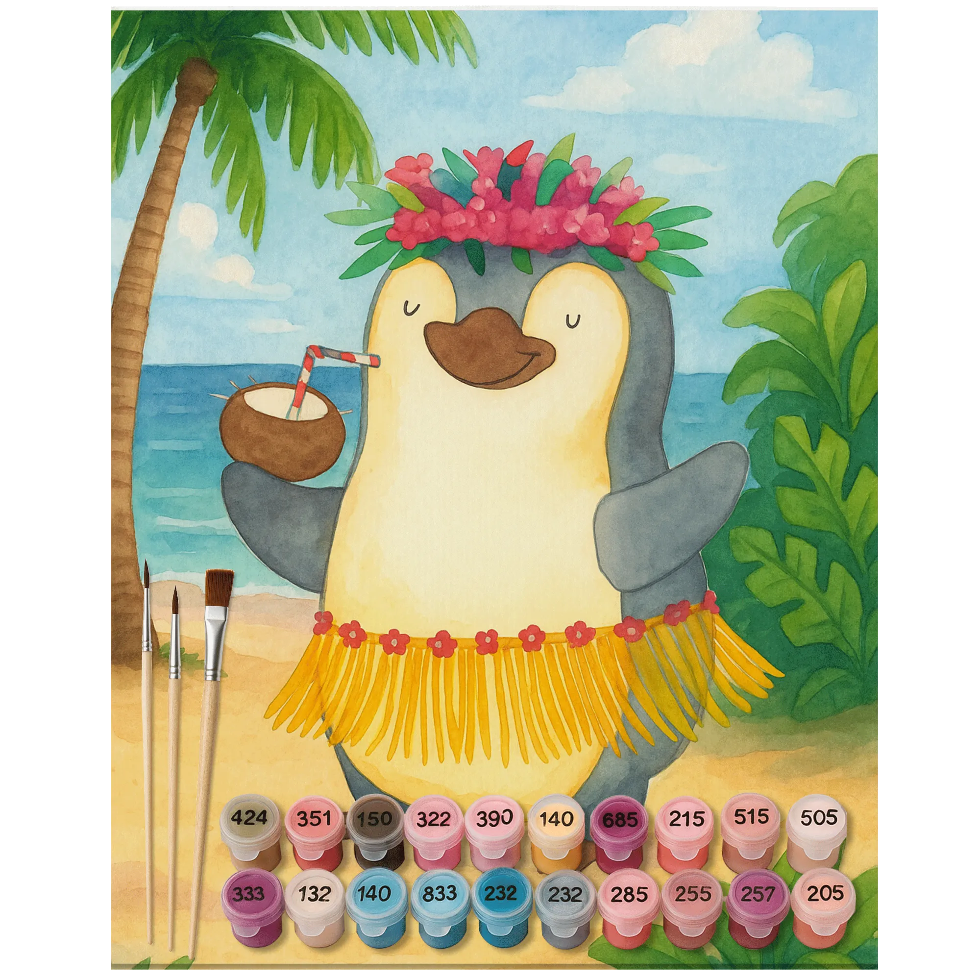 Malen nach Zahlen Pinguin Kokosnuss Design - Ohne Rahmen - 24 Farben (Standard)