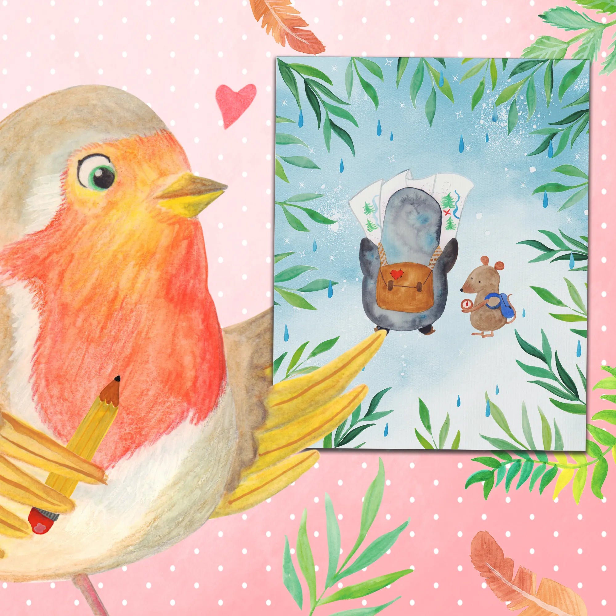 Der süße Motif von Pinguin und Maus ist eine Einladung zu Abenteuern und Ausflügen! Angesichts einer Landkarte blickt unser mutiger Pinguin voller Vorfreude in die Welt hinein. Seine treue Freundin, die kleine Maus, prüft mit einem Kompass, ob sie auf dem richtigen Weg sind. Der Roadtrip der beiden ist ein Symbol für wahre Freundschaft und unbändige Wanderlust. Gemeinsam gehen sie auf Entdeckungsreise und zeigen uns, dass das Leben voller aufregender Möglichkeiten steckt. Egal, ob es ein kurzer Ausflug oder eine große Reise ist – es geht darum, die kleinen Momente zu schätzen und die Welt zu erkunden. Diese beiden Abenteurer ermutigen uns, den Alltag hinter uns zu lassen und neue Pfade einzuschlagen. Ihr gemeinsames Abenteuer inspiriert uns, die Welt neugierig zu erkunden und die Schönheit des Weges zu genießen.