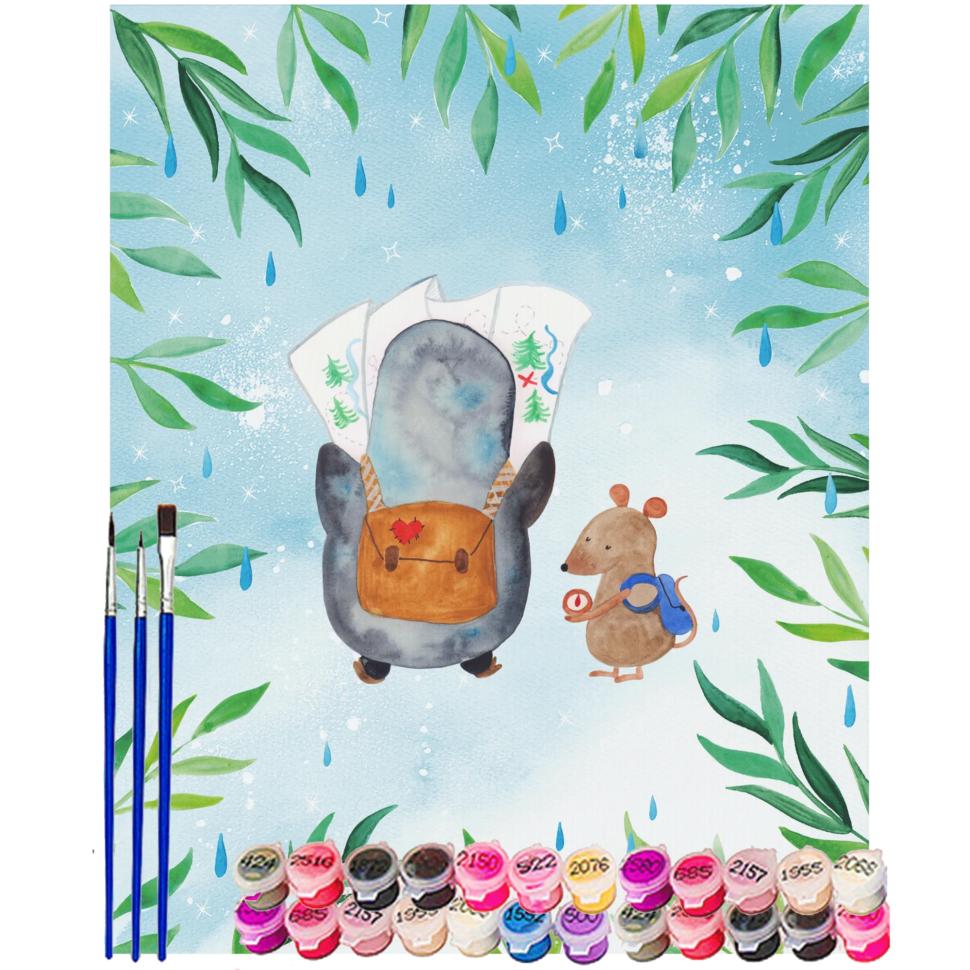 Malen nach Zahlen Pinguin & Maus Wanderer - Ohne Rahmen - 36 Farben (Hohe Auflösung)