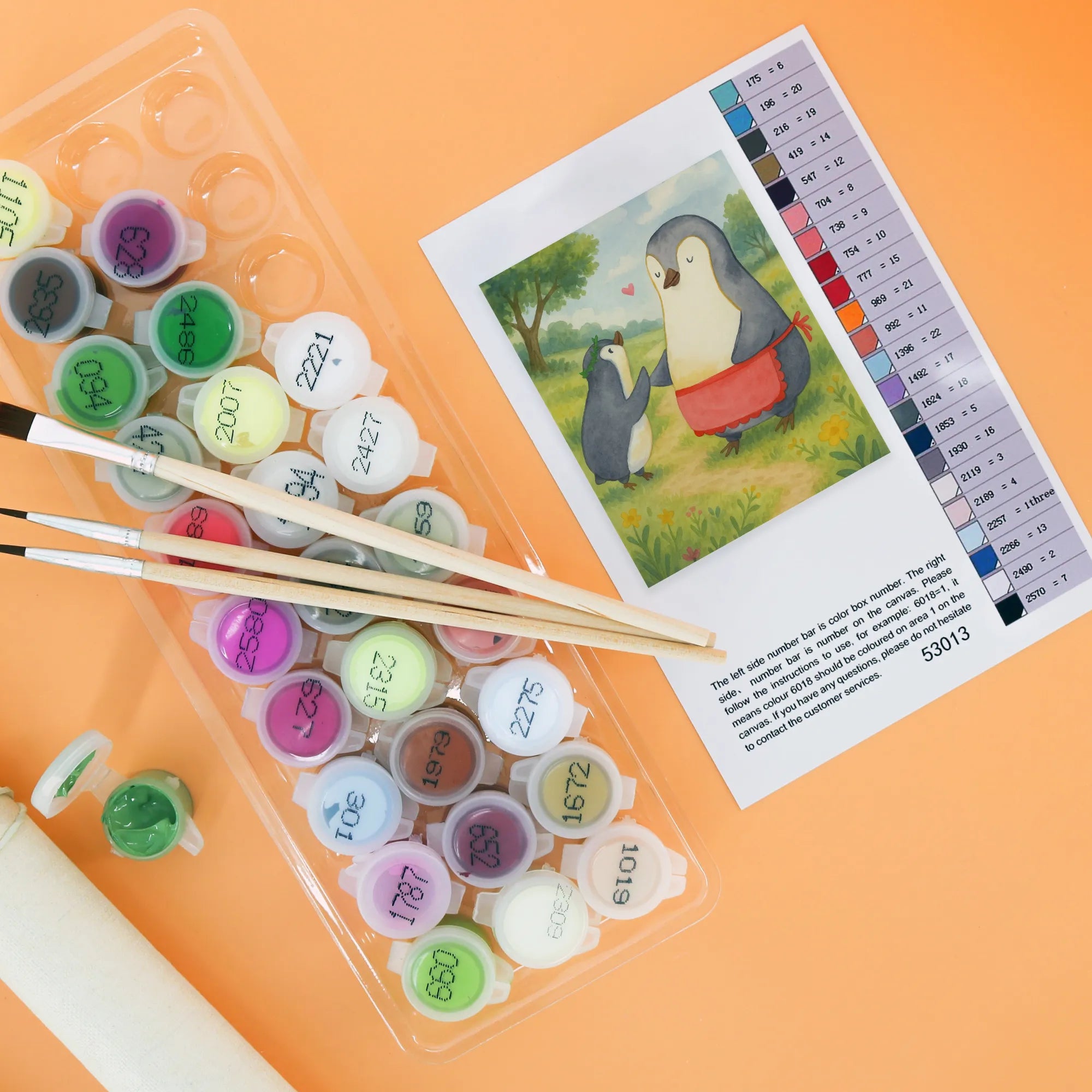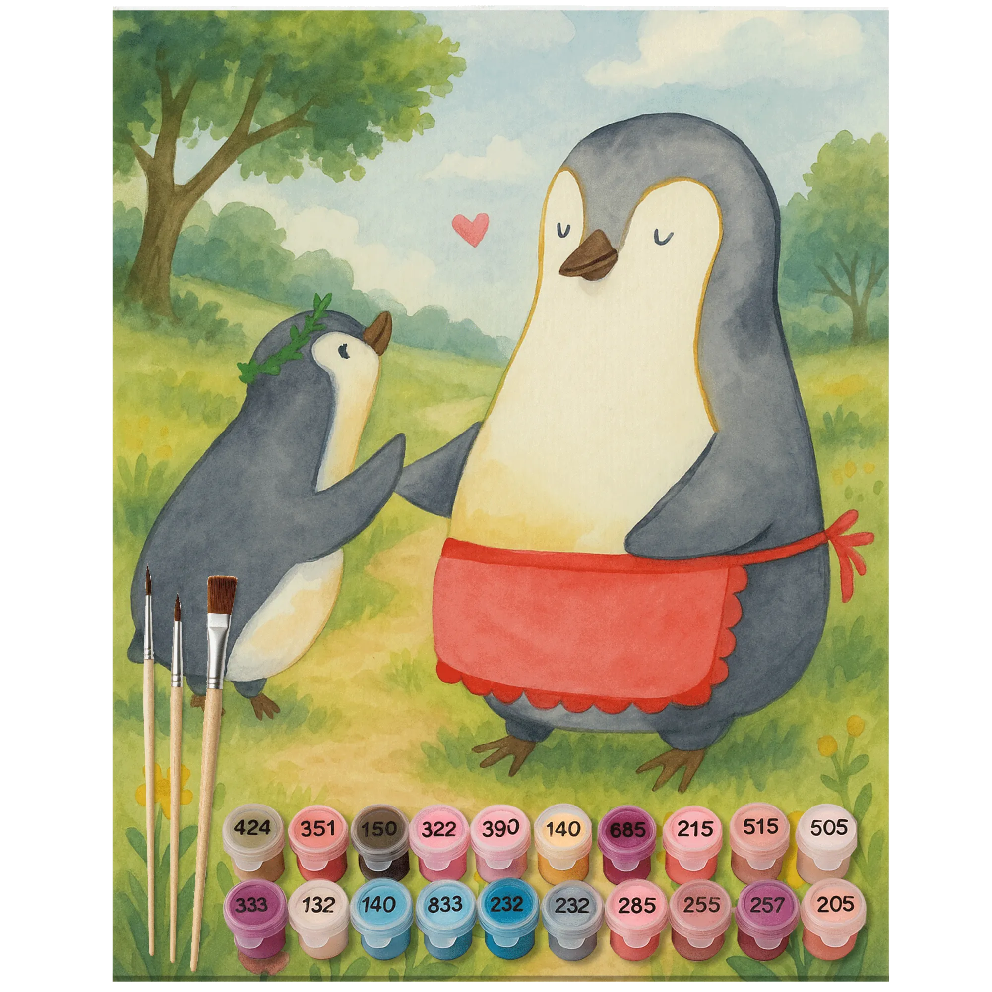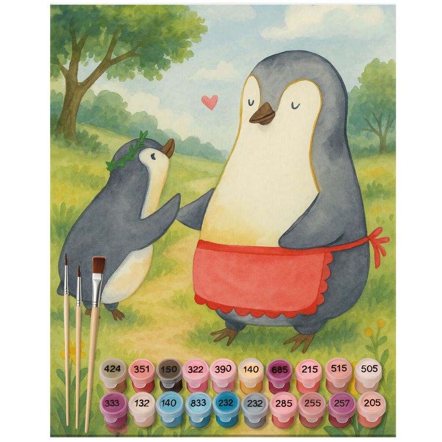 Malen nach Zahlen Pinguin mit Kind Design - Ohne Rahmen - 24 Farben (Standard)
