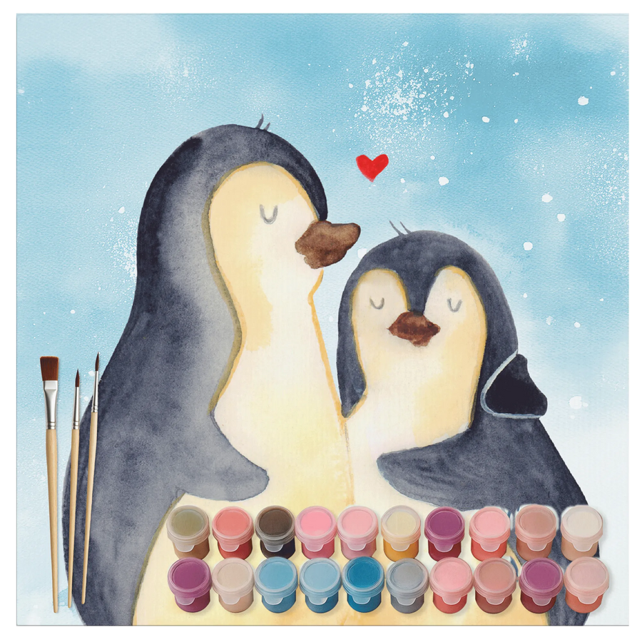 Entdecke die zauberhafte Welt des Malen nach Zahlen mit unserem wunderschönen Set "Pinguin umarmend" aus der Pinguin-Kollektion von Mr. & Mrs. Panda! 🎨