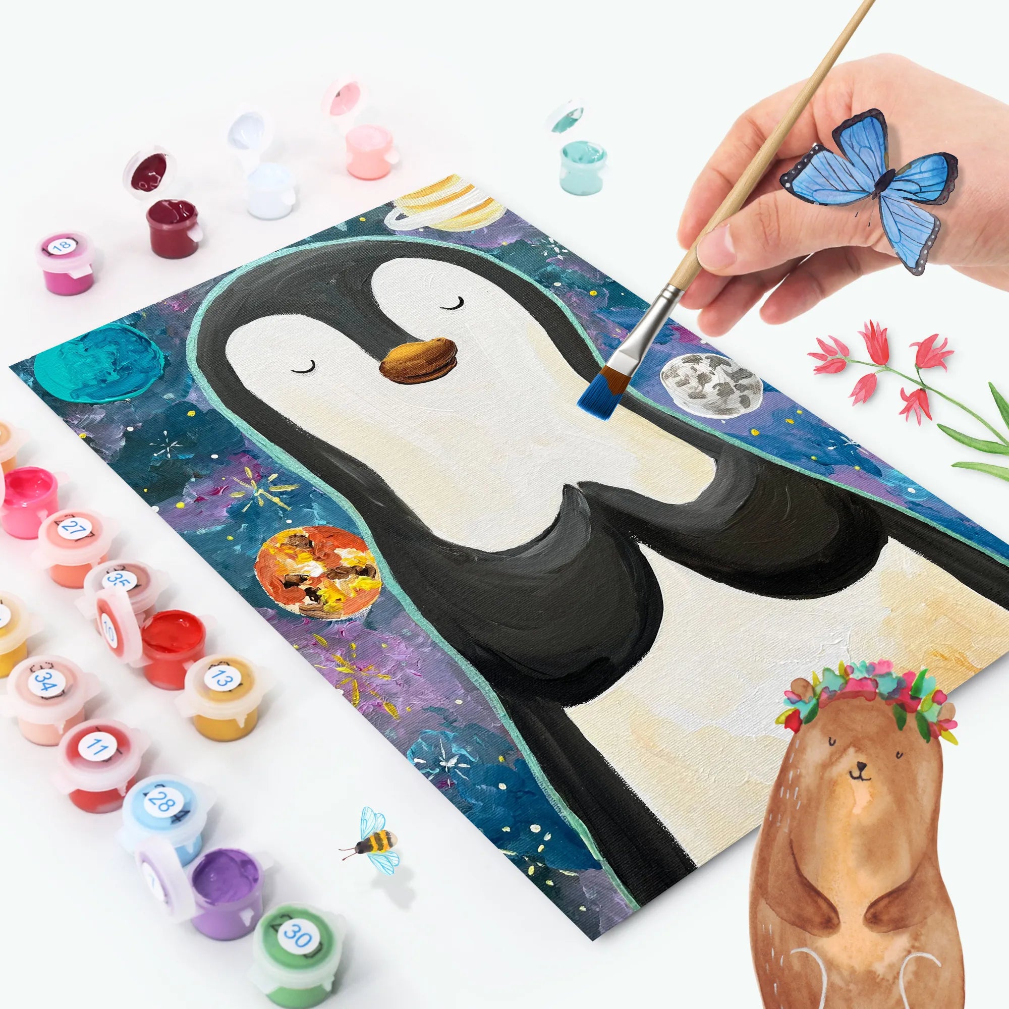 Malen nach Zahlen Pinguin Universum Design - Ohne Rahmen - 24 Farben (Standard)