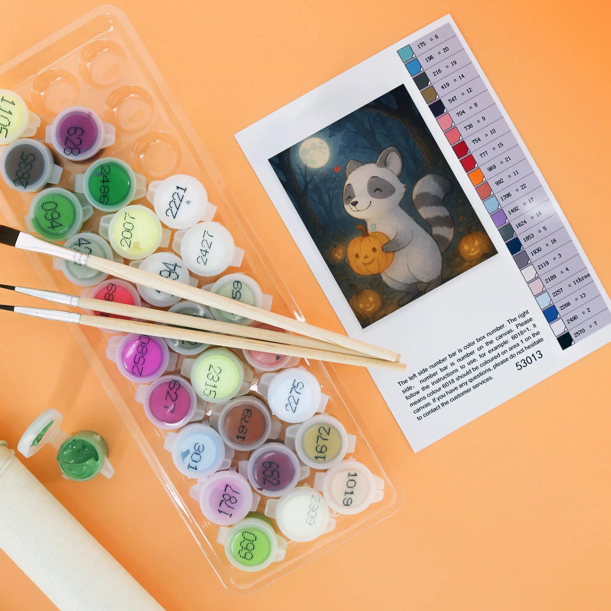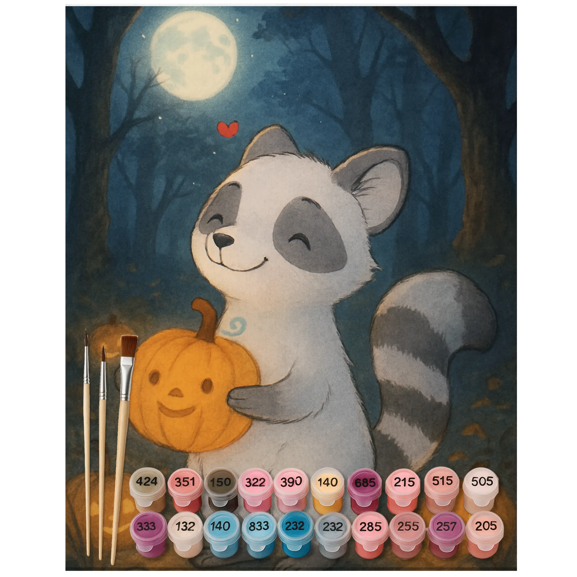 Malen nach Zahlen Waschbär Kürbis Design - Ohne Rahmen - 24 Farben (Standard)