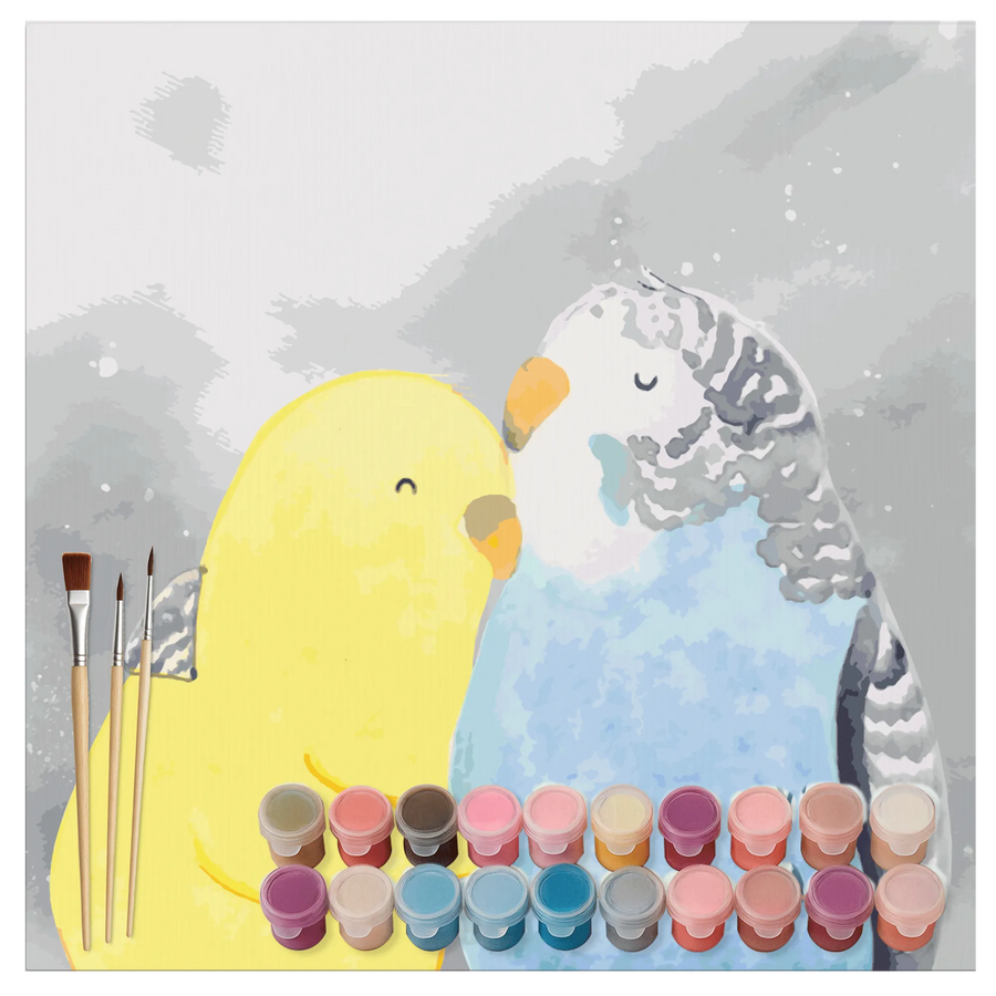 Entdecke das wundervolle Malen nach Zahlen Set "Wellensittich Liebe" aus der Liebe Kollektion von Mr. & Mrs. Panda! Dieses kreative Set lädt Dich ein, ein einzigartiges Kunstwerk zu erschaffen, das sowohl Deine künstlerischen Fähigkeiten fördert als auch Deine Liebe zu besonderen Menschen feiert.