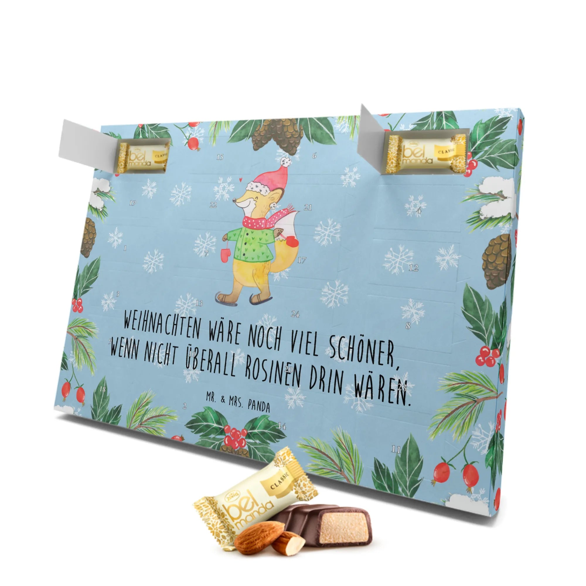 Der wundervolle Marzipan Adventskalender Fuchs Schlittschuhe aus der Winter Kollektion von Mr. & Mrs. Panda ist das perfekte Geschenk für die besinnliche Weihnachtszeit!