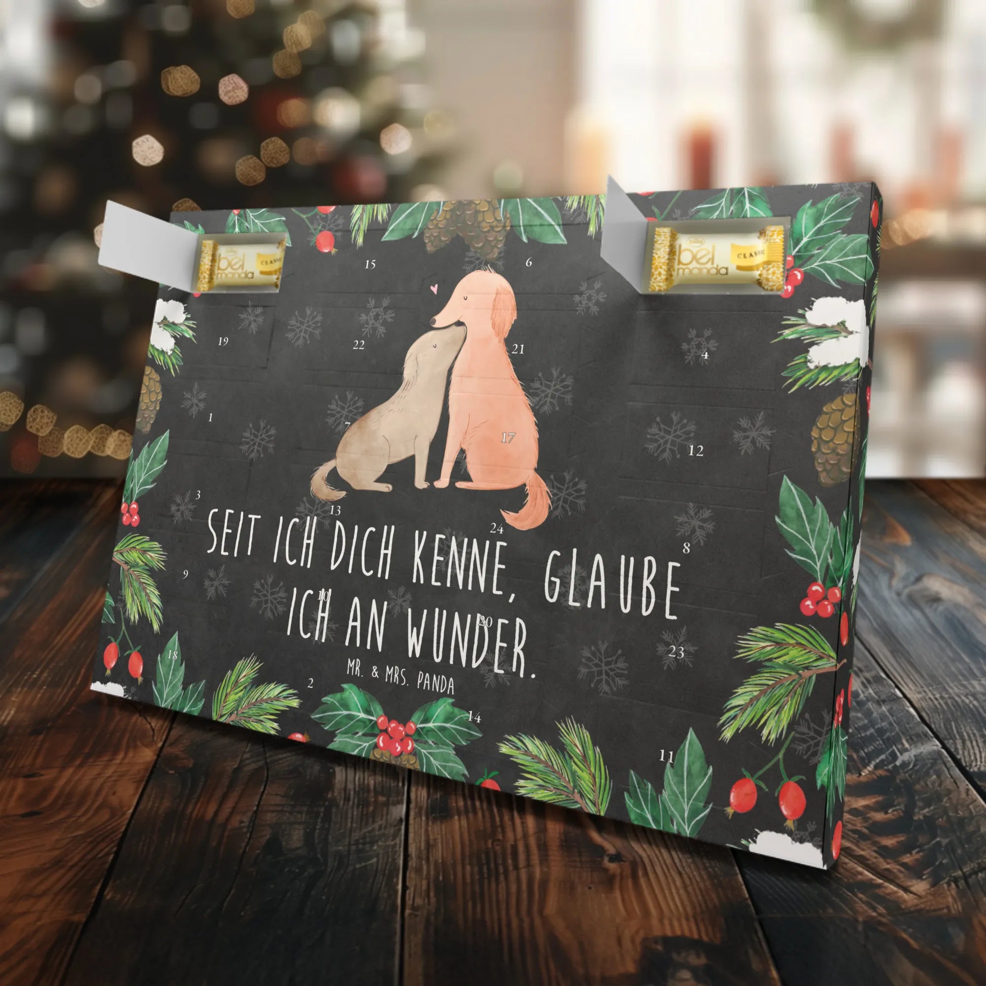 Der Marzipan Adventskalender "Hunde Liebe" von Mr. & Mrs. Panda ist das perfekte Geschenk für alle Tierliebhaber und Hundebesitzer. Wenn die Tage bis Weihnachten zählen, wird dieser wunderschöne Adventskalender nicht nur die Vorfreude auf die Feiertage steigern, sondern auch die Herzen aller Hunde-Fans höher schlagen lassen! Mit dem bezaubernden Motiv von zwei niedlichen Hunden, die vertrauensvoll kuscheln, zeigt dieser Kalender auch, wie viel Liebe zwischen Hund und Mensch bestehen kann. Der Slogan „Seit ich dich kenne, glaube ich an Wunder“ trifft den Nagel auf den Kopf, vor allem für alle, die das Glück und die Freude erleben, die ein Hund ins Leben bringt.
